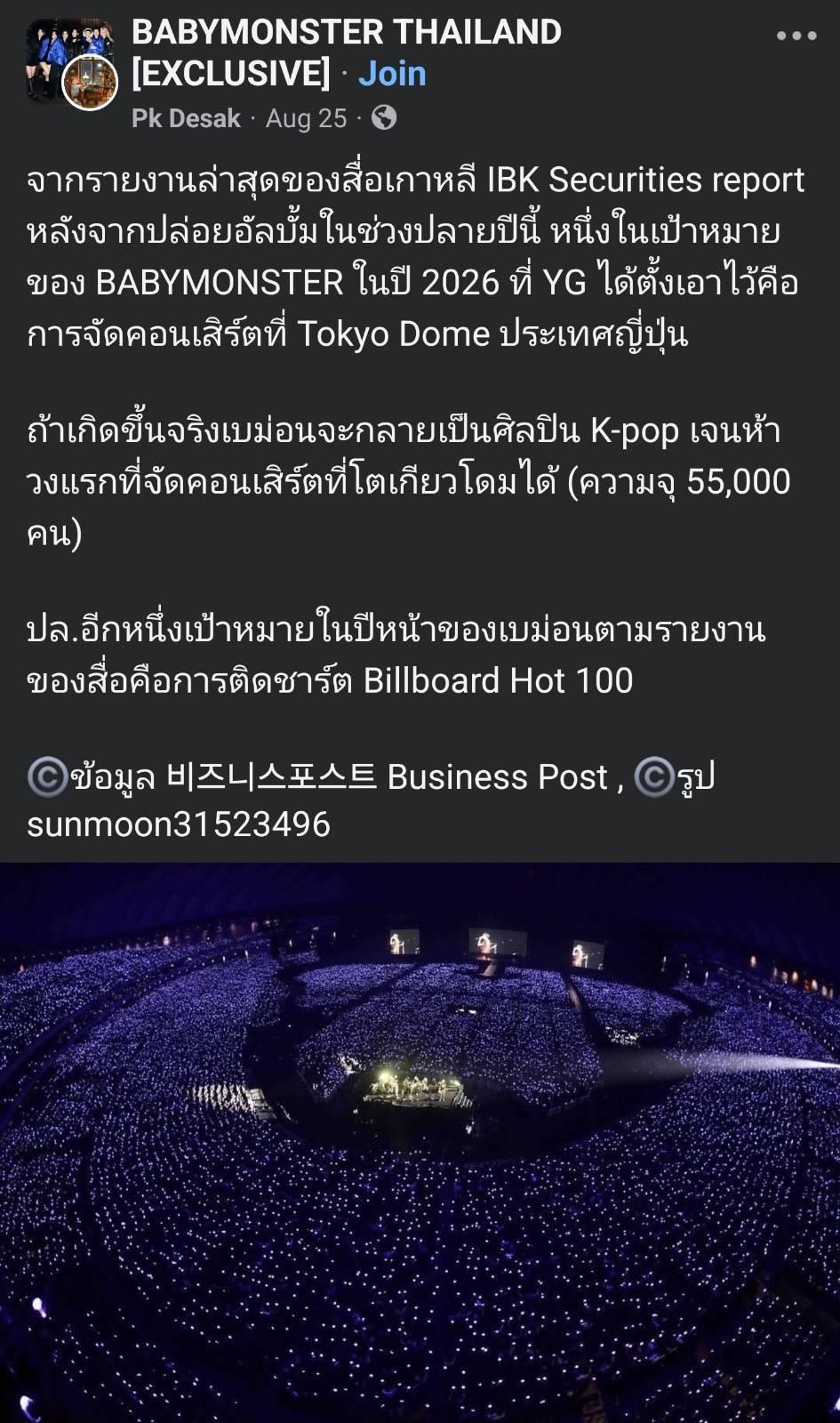 Babymonster : คิดว่า YG จะทำตามเป้าหมายที่จะพา BM จัดคอนที่โตเกียวโดมได้ภายในปี 2026 หรือเปล่า