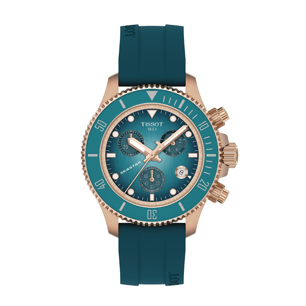 ⌚️🌊 Tissot Seastar 1000 Chronograph ผู้หญิง โครโนกราฟ 38mm กันน้ำ 300m โทนโรสโกลด์–เทอร์ควอยส์ ⏱️🏃