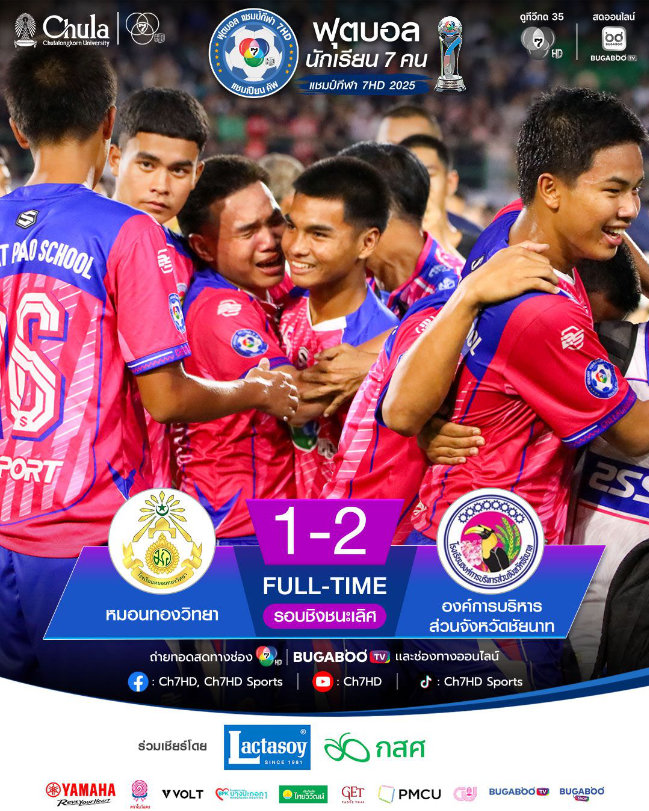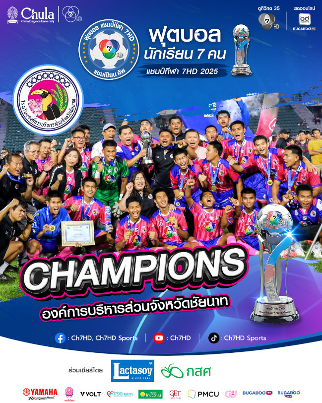 ก่อนอื่นเลย ก็ขอแสดงความยินดีกับ โรงเรียน อบจ. ชัยนาท ด้วยที่สร้างประวัติศาสตร์คว้าแชมป์ฟุตบอล 7 สี ในครั้งแรกด้วยครับ