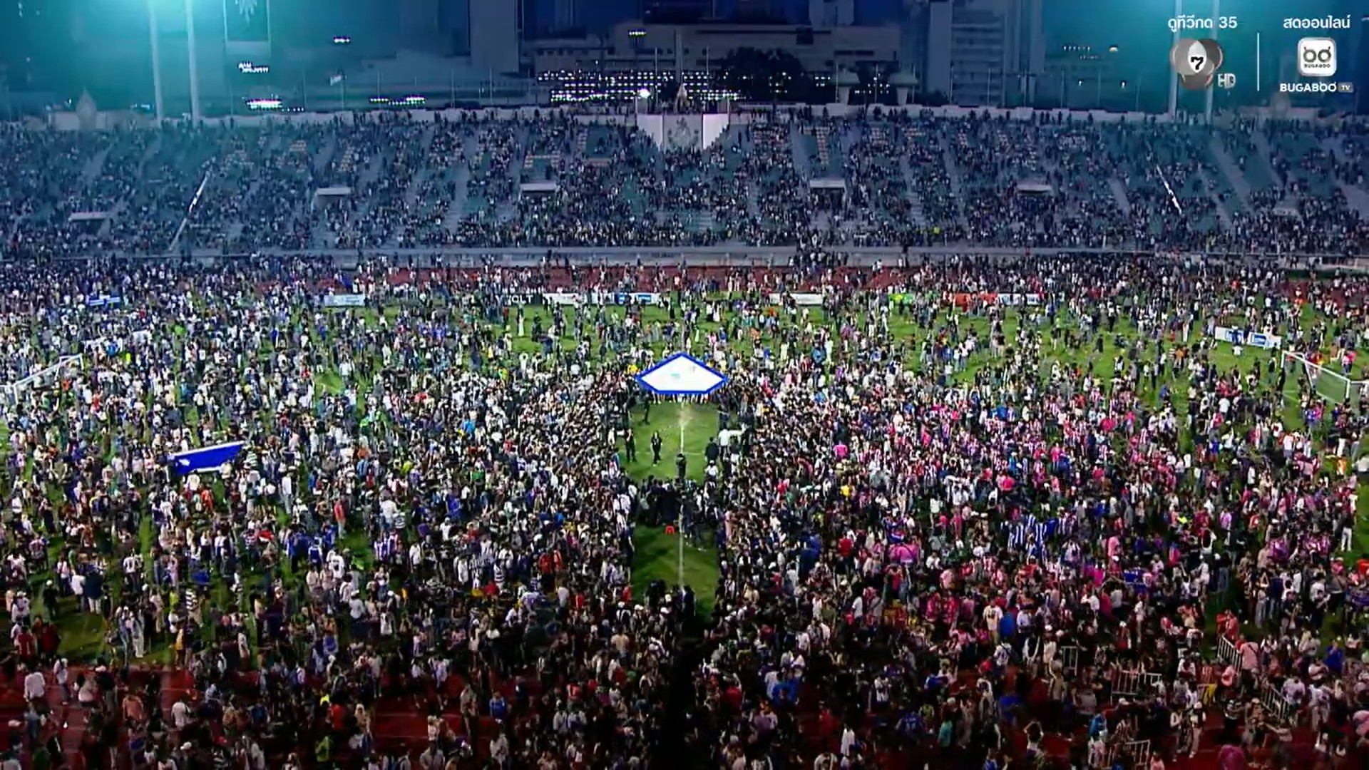 โดยได้เกิดภาพสนามแตกของจริง!! คนนั่งเชียร์เต็มพื้นที่ในสนามศุภฯ เลยทำให้เจ้าหน้าที่ ทีมงาน และ โค้ชทั้งสองทีม ก็ต้องมาจัดระเบียบแฟนบอลกันเลย แล้วบางคนมีคนมาเชียร์บนตึกต่างๆ ใกล้ๆ สนามศุภฯ ก็ยังมี อะไรที่ไม่เกิด ก็ได้เกิดแล้วครับ ทำให้เราคิดถึงภาพในอดีตเมื่อ 30 ปีที่แล้วเลย ที่เคยจัดบอล King Cup แฟนบอลก็ล้นอย่างแบบนี้เลย