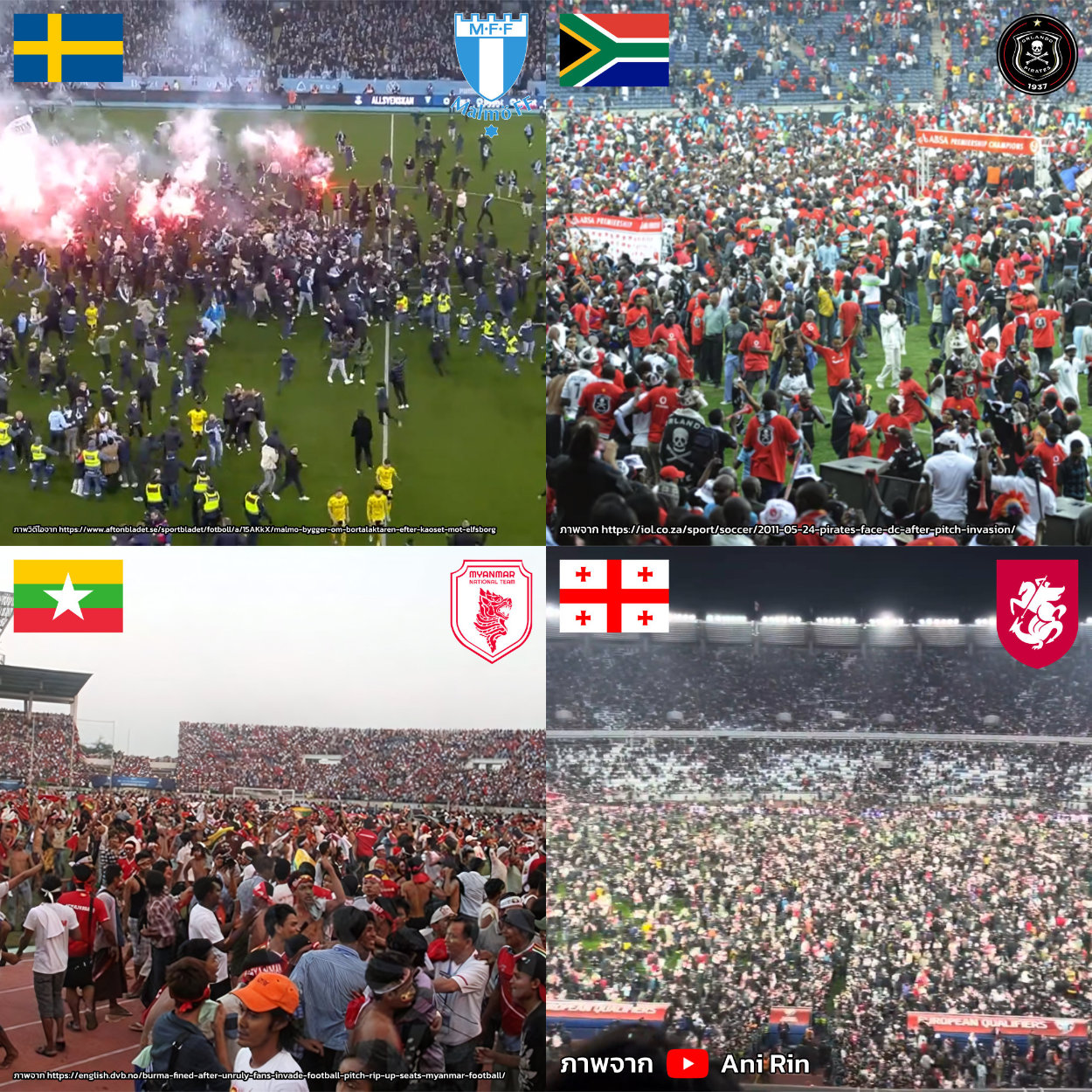 - เหตุการณ์ที่ 5 : สวีเดน มัลโม่ เอฟเอฟ (Malmö FF) ลงมาฉลองแชมป์ลีกสวีเดน เป็นเรื่องปกติของทีมนี้เลย พอได้แชมป์ลีกแล้วลงมาฉลองแชมป์กับนักเตะเลย