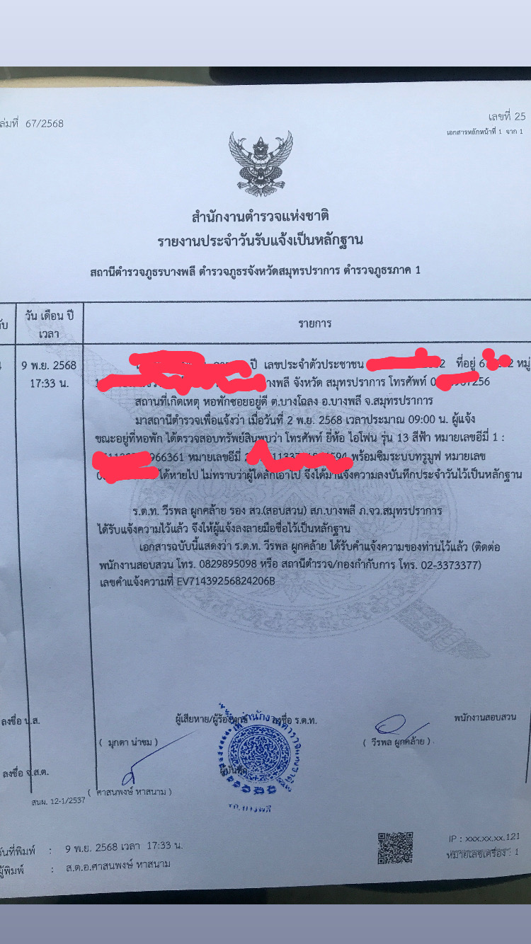 ใบแจ้งความประจำวันที่เป็นหนังสือตราครุฑ ใช่เป็นหนังสือทางราชการที่จะขอตรวจสอบเลข IMEI(อีมี่)เครื่องโทรศัพท์ที่หายได้ไหม