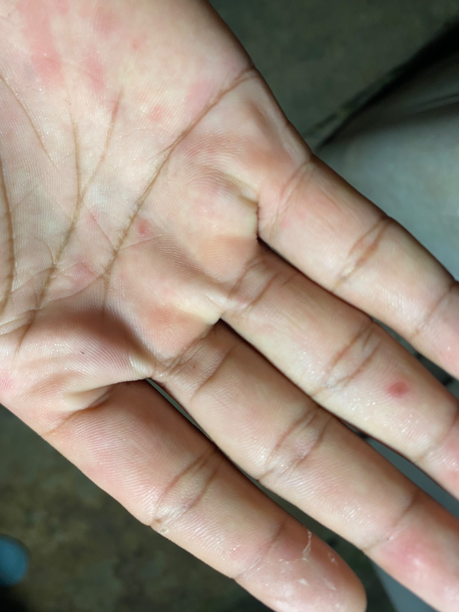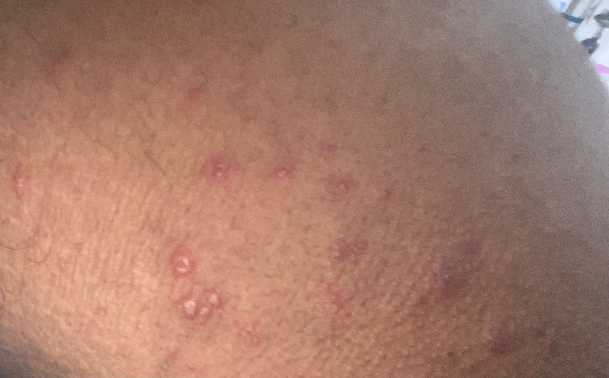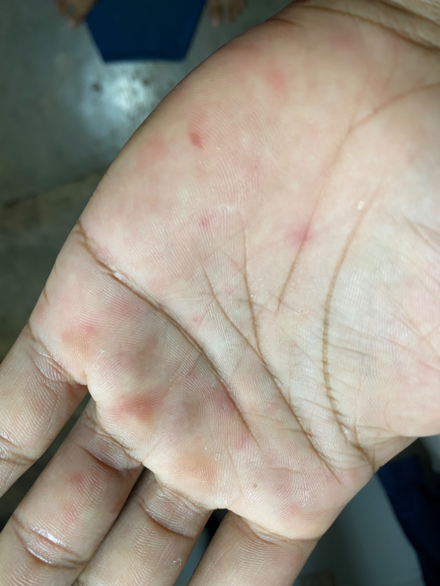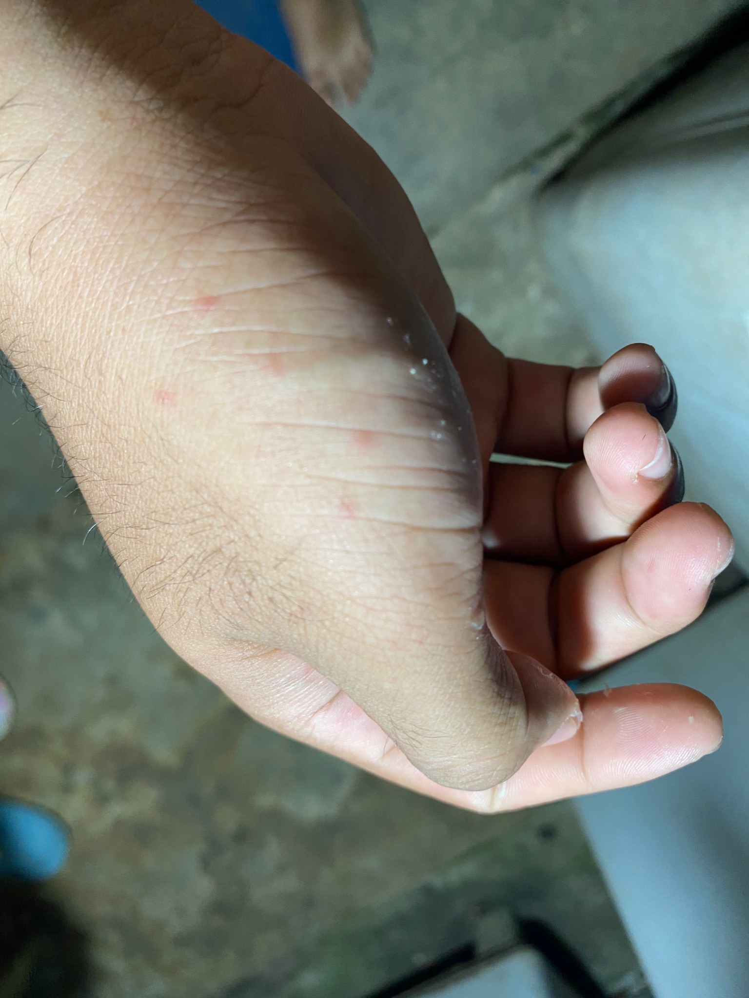 มีตุ่มขึ้นแบบนี้บริเวณก้น ตามมือตามเท้า ไม่คันแต่เจ็บ ไม่เคยเป็นอีสุกอีใสมาก่อน