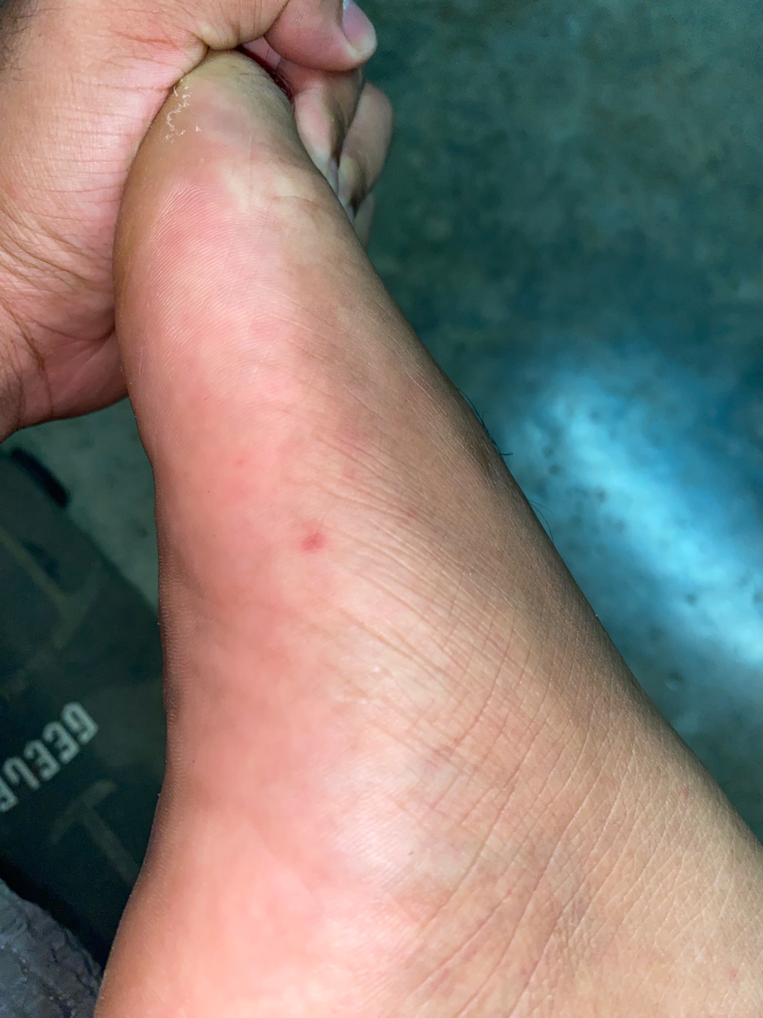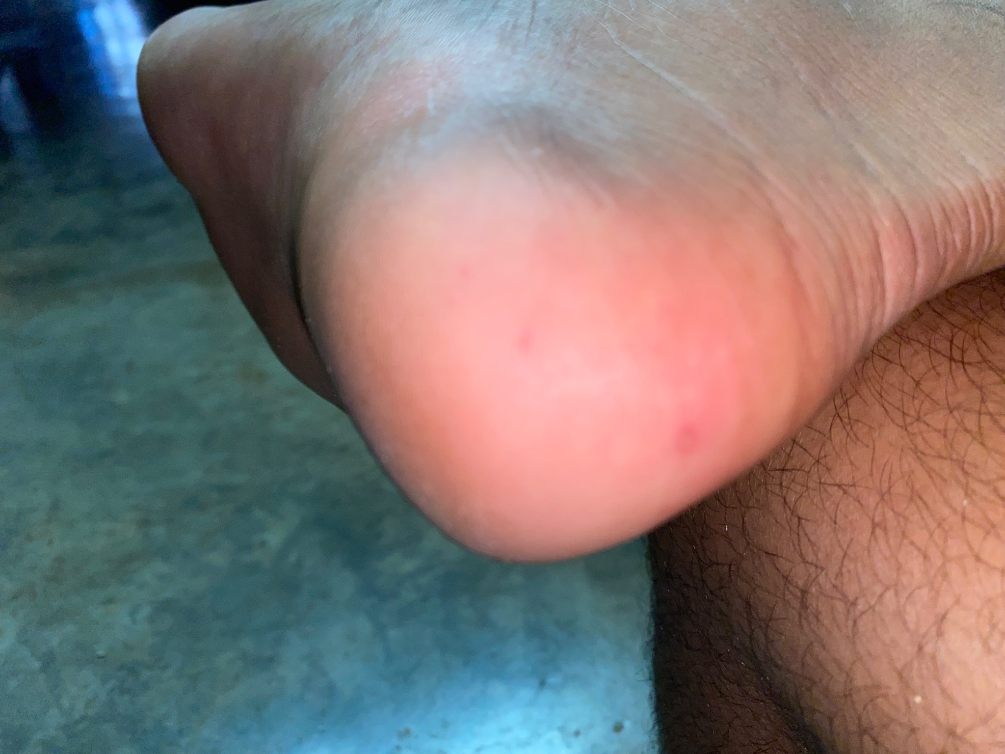 ตอนนี้เราเป็น อีสุกอีใส อยู่ค่ะ มีไข้ เรามีตุ่มแดงๆ ที่อยู่บริเวณโหนก (ดูภาพ) ไม่มีอาการคัน แต่มีอาการเจ็บแสบ เวลาเดิน หรือยืนเท้าชิด เป็นตั้งแต่เมื่อวาน (5 กุมภาพันธ์) ตอนโพสต์กระทู้นี้วันที่ 6 กุมภา