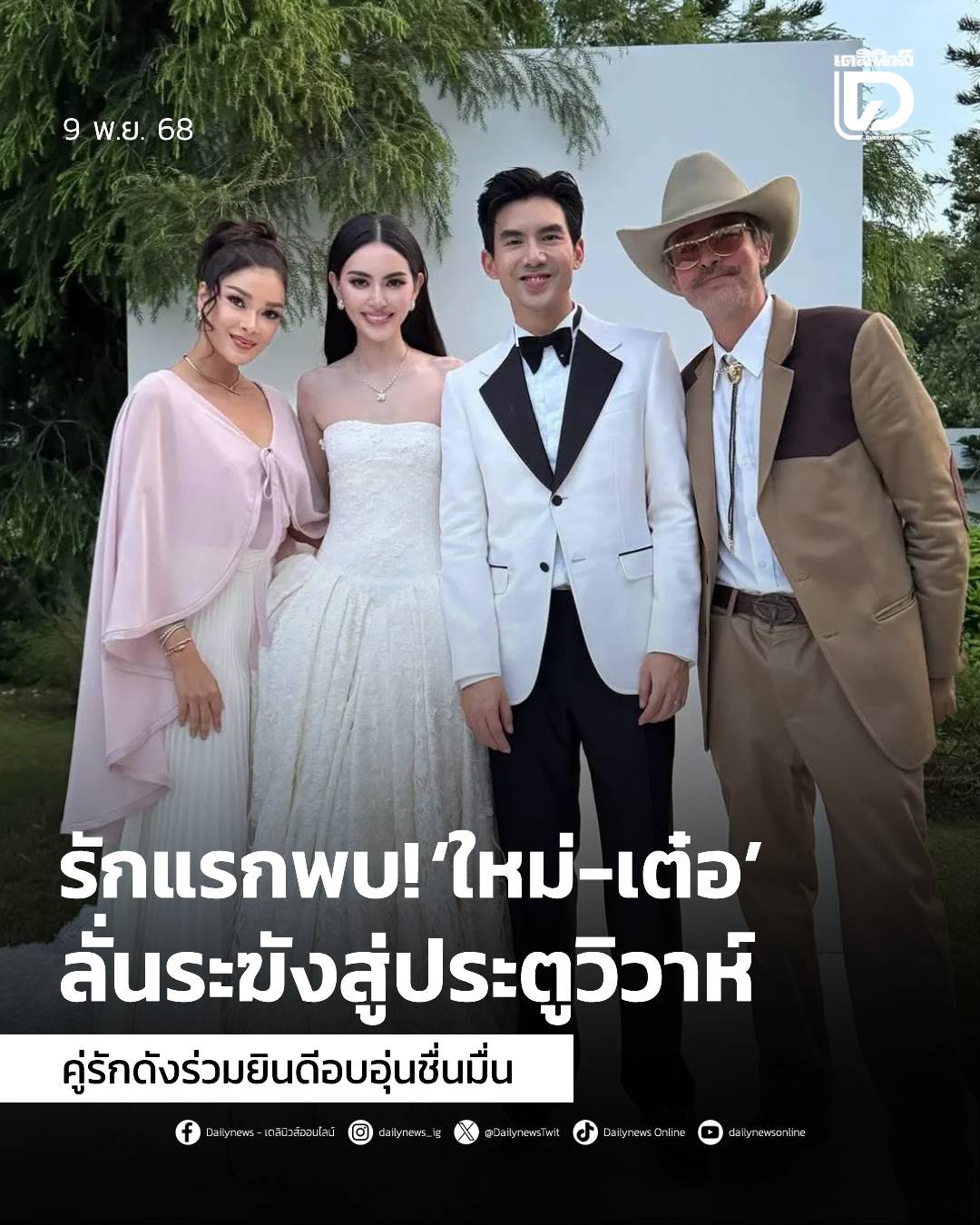 สวยตะลึง! "ใหม่ ดาวิกา" ในชุดเจ้าสาวเกาะอกสุดหรู เคียงคู่เจ้าบ่าว "เต๋อ ฉันทวิชช์" สุดเท่ "ฮาน่า-ฮิวโก้" ร่วมงานอวยพรด้วยความรัก
