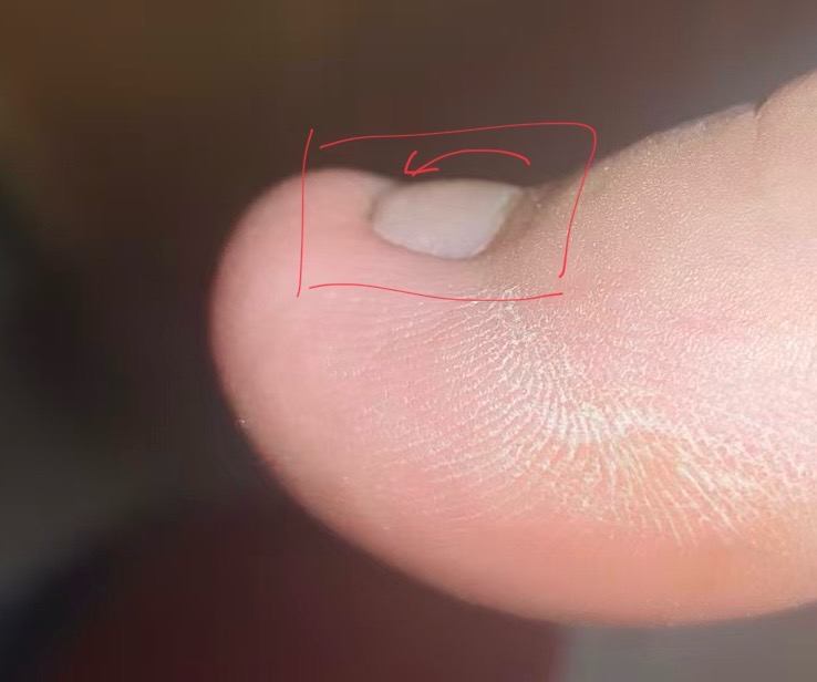 ดังรูปค่ะ อาการเป็นเล็บมันผิดรูป ไม่งอกแบบตรง งอกแบบงอ แล้วงอกเข้าไปในเนื้อ ทำให้เนื้ออยู่สูงกว่าเล็บ