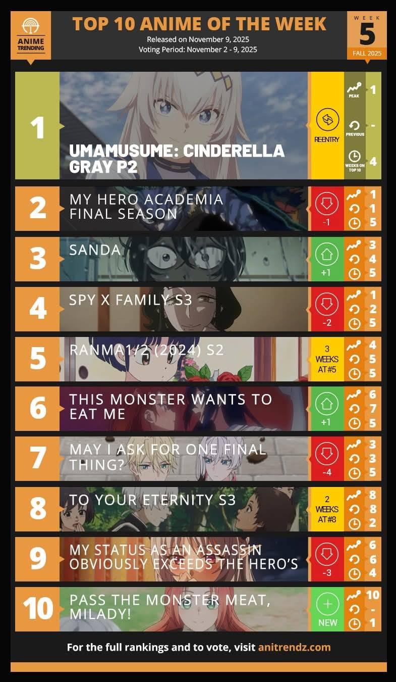 TOP 10 ANIME OF the week 5 for 🍂fall🍁2025