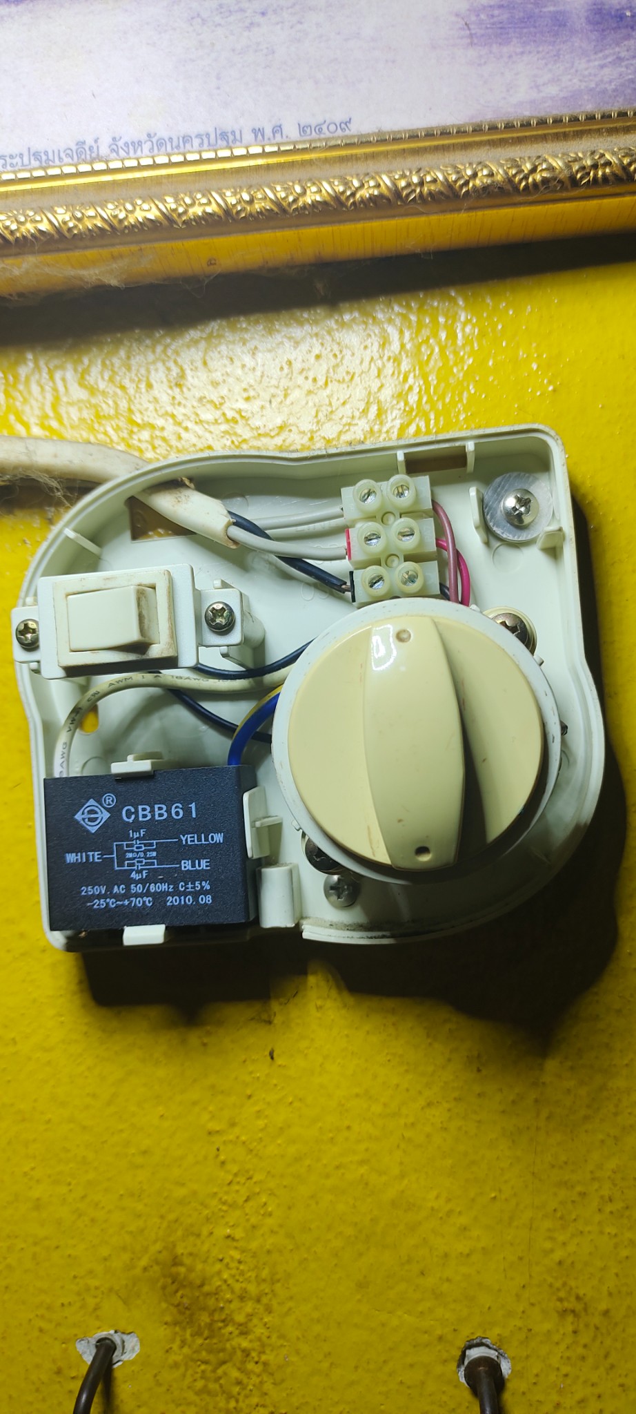 สอบถามหน่อยครับผมควรเอาสายสีแดงต่อกับสายอะไรครับแบบนี้พอดีหนูมันกัดสายแล้วพัดลมไม่ติดครับ