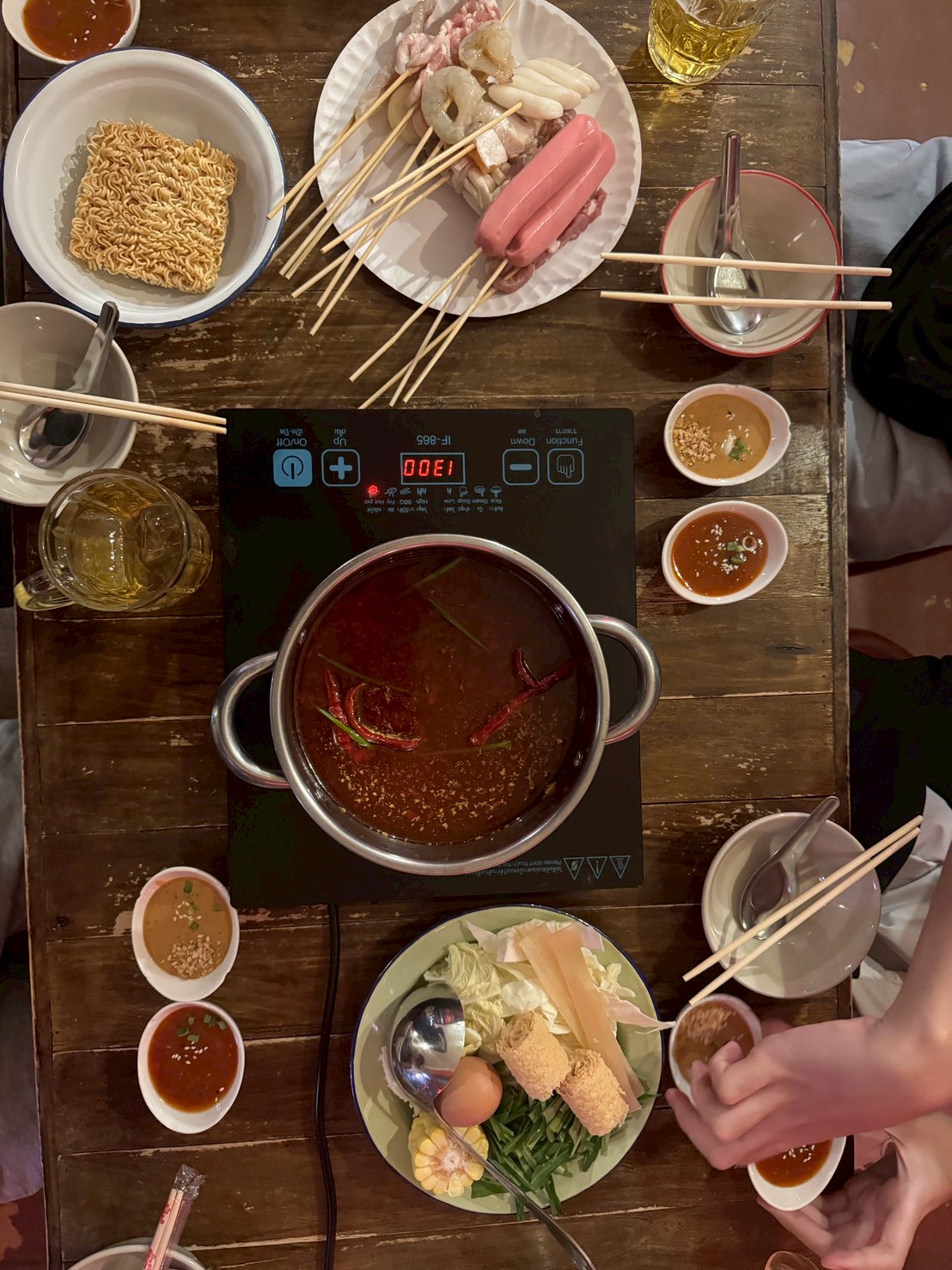 มาต่อกันที่ช่วงกลางคืนครับ พวกผมก็ได้ไปกินหมาล่าร้านเว่ย เป็นร้านหมาล่าห้องแอร์ที่บรรยากาศดีมาก มีดนตรีสดด้วย ตัวน้ำซุปหมาล่าเข้มข้น เผ็ดชาลิ้นเลย เป็นฟิวหมาล่าชาบูๆ เมนูแนะนำไม่ควรพลาด คือ ข้าวผัดน้ำปลา3กระต่าย ชื่ออาจจะดูธรรมดาแต่รสชาติมันเกินขาดมาก มันคือข้าวผัดกับน้ำปลาตรา 3 กระต่าย ใส่กากหมู ใส่พริก ใส่หอมแดง ซึ่งมันเป็นรสชาติที่แบบอร่อยมากๆๆ จนอยากไปซ้ำอะ อยากจะพาไปรู้จักกับน้ำปลาแท้ตราสามกระต่าย เป็นแบรนด์น้ำปลาโดยครอบครัวชาวประมงแท้ๆ แต่เดิมครอบครัวเป็นชาวประมงพื้นบ้านอยู่ที่เกาะกูด จังหวัดตราดครับ และอีกอย่างที่อยากบอกสำหรับใครอยากจะลองเที่ยวตัวเมืองตราดตอนกลางคืนดู ผมบอกเลยว่าตัวเมืองตราดเงียบเหงามากๆๆครับ แทบจะไม่ได้ยินเสียงรถวิ่งเลย แต่ผมว่ามันก็ดีเงียบสงบดีไม่เหมือนกับฝั่งเกาะที่วุ่นวาย และผู้คนพลุกพล่าน
