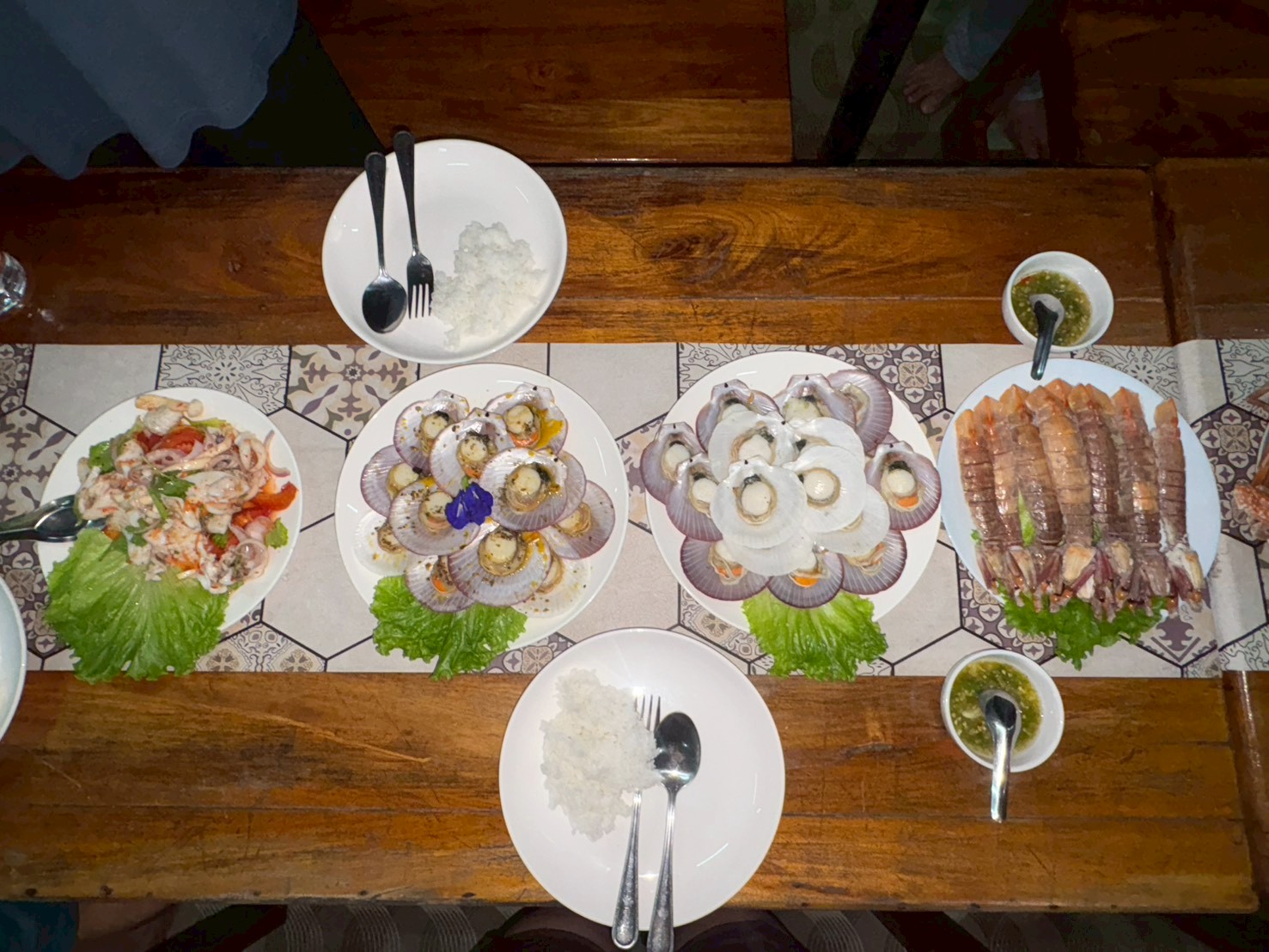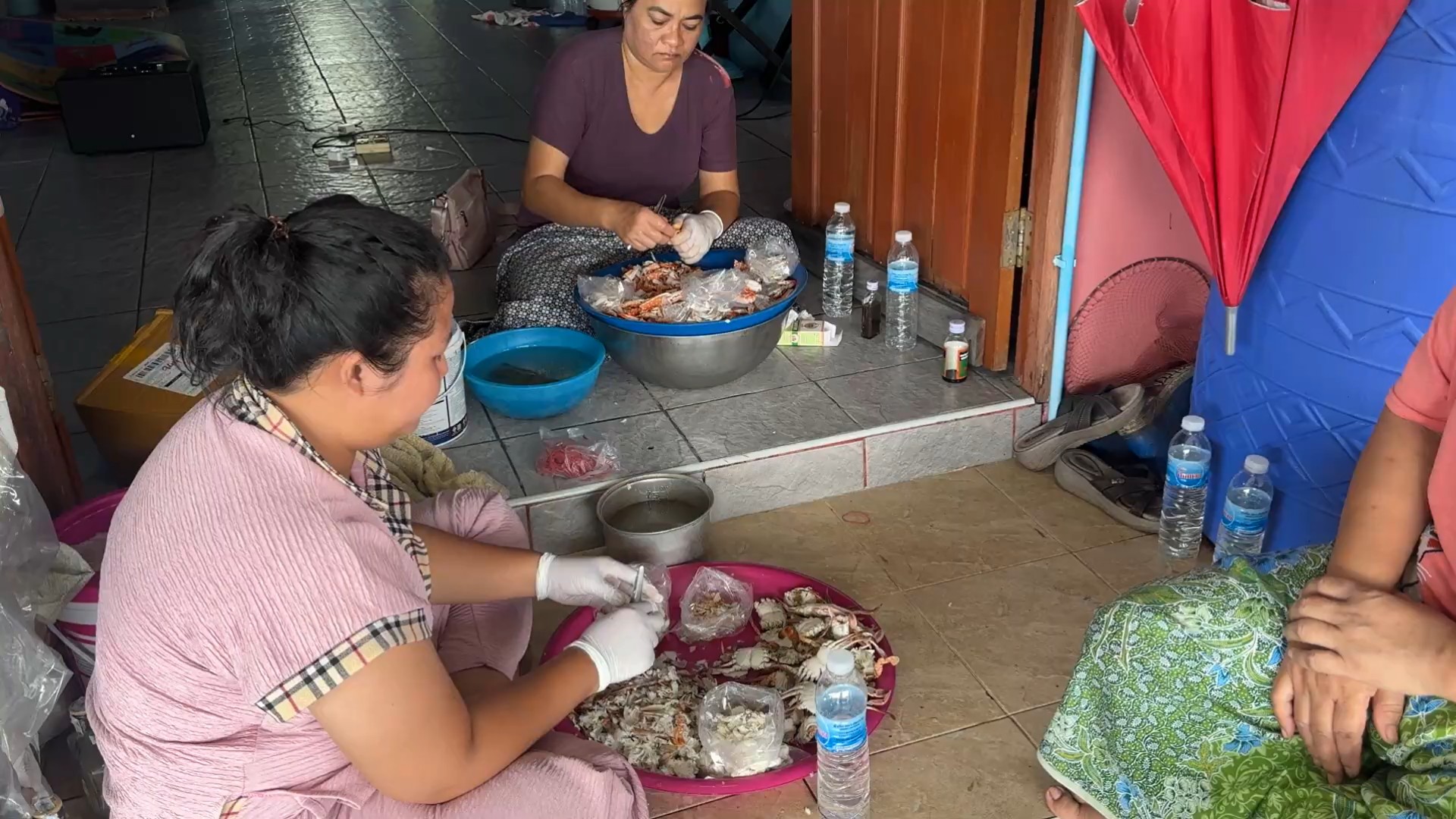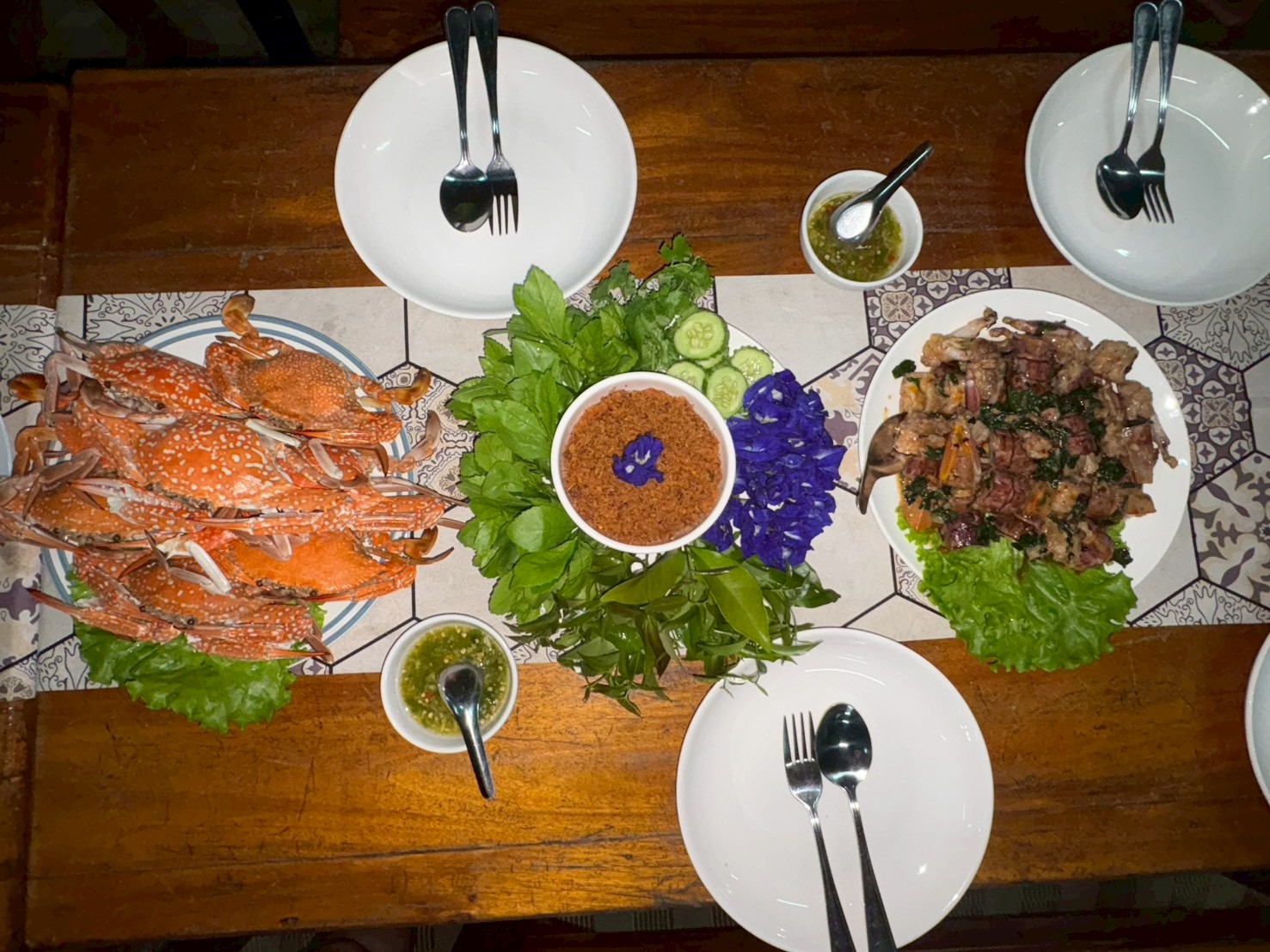 หลังจากที่พวกผมทำกิจกรรมเสร็จก็ไปอาบน้ำ ทางบ้านกำนันโฮมสเตย์ ก็ได้จัดเตรียมอาหารให้เรียบร้อยซึ่งมันอลังการมาก กั้งตัวเท่าแขน ปูม้า ก็ตัวใหญ่ๆและยังมีหอยที่พวกผมไปหามาได้ ทางคนในชุมชนนั้นดูแลพวกผมดีมากเหมือนพวกผมเป็นลูกเป็นหลานเขา ทั้งแกะปู/กั้งให้กิน ปอกผลไม้ให้ และของขึ้นชื่อของคนในชุมชนนี้เป็นน้ำพริกกั้งซึ่งรสชาติ อร่อยมากทานง่าย มีความหวานและเผ็ดปลายครับ