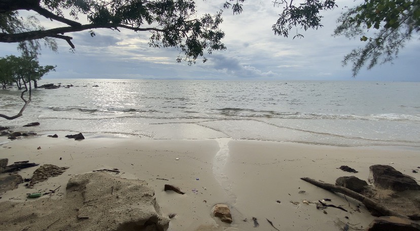 ไปต่อกันที่หาดสองสีครับ หาดทรายที่นี่เป็นปรากฏการณ์ธรรมชาติสร้างเม็ดทรายละเอียดสีขาวและสีน้ำตาลแดงมาบรรจบกัน จนกลายเป็นหาดทรายสองสีที่สังเกตได้ด้วยตาเปล่าและไม่ได้พบได้ทั่ว ๆ ไป นอกจากนี้ใกล้ ๆ ยังเป็นลานต้นไม้ 100 ปี ที่ต้นลำพูแต่ละต้นล้วนเติบโตยืนท้าลม โต้คลื่นในทะเลอย่างมั่นคง และต้นเสม็ดแดงไม้หายากประจำถิ่นอีกด้วยครับ