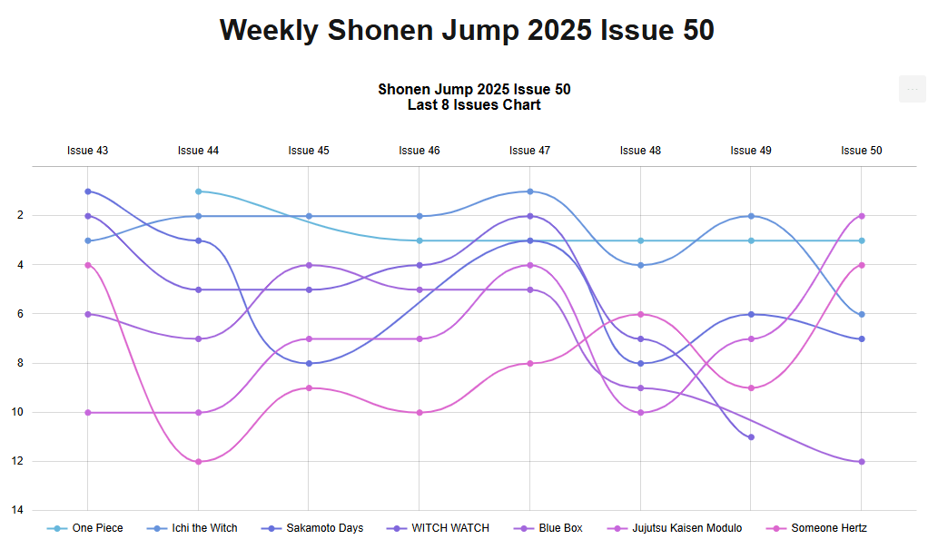 รายงานผลจัดอับดับและการเคลื่อนไหวของ โชเน็นจัมป์ตั้งแต่เล่มที่ 50/2025 ช่วง 8 สัปดาห์ที่ผ่านมา