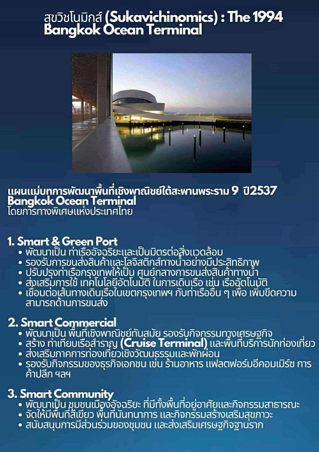 บทความนี้มุ่งวิเคราะห์ “สุขวิชโนมิกส์” (Sukavichinomics) ในฐานะปรัชญาเศรษฐศาสตร์เชื่อมโยงการพัฒนาเศรษฐกิจอุตสาหกรรมเข้ากับการพัฒนาทุนมนุษย์และสถาบันทางการศึกษา โดยใช้กรณีศึกษา “โครงการท่าเรือกรุงเทพ (Bangkok Ocean Terminal) พ.ศ. 2536” เป็นตัวอย่างเชิงประจักษ์