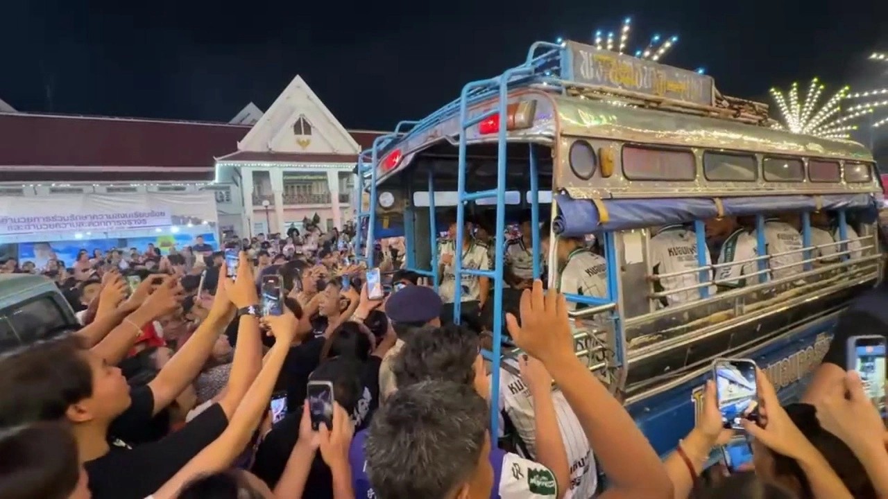 ชาวแปดริ้วแห่เซลฟี่ "รถขนฝัน" ต้อนรับทีม "หมอนทองวิทยา" แน่นศาลากลางจังหวัด