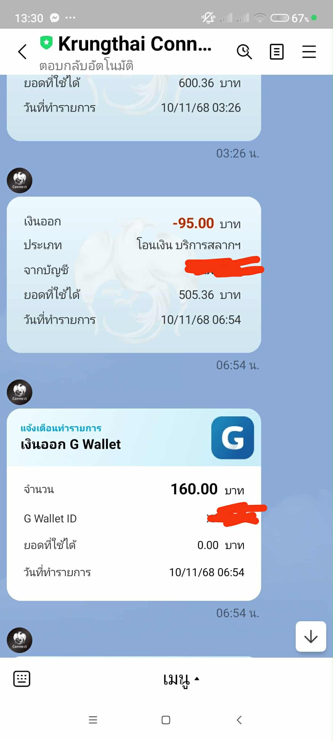 -หลังโอนเงินซื้อสลากปรากฏว่าในไลน์บัญชีแจ้งยอดหักเงิน95บาทจากประเภท โอนเงินบริการสลาก (ซึ่งที่จริงต้องหัก160บาท)