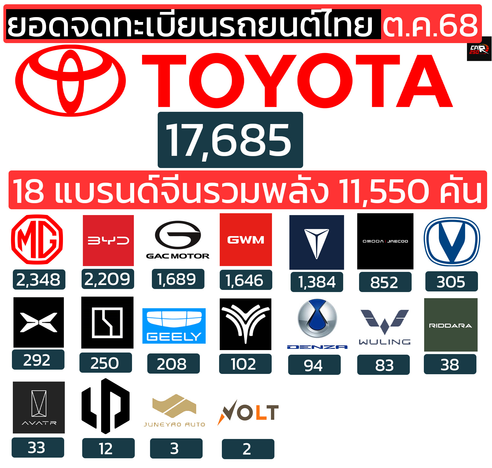 โกดัก โนเกีย มั๊ยล่ะ...Toyota ขายรถได้ 17,685 คัน รถจีนรวมพลังได้ 11,550 คัน