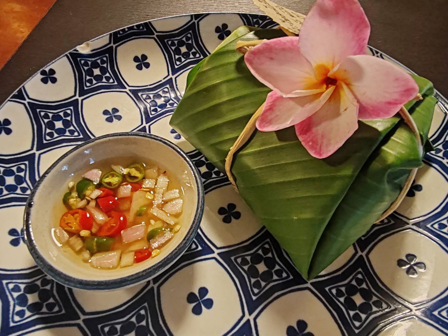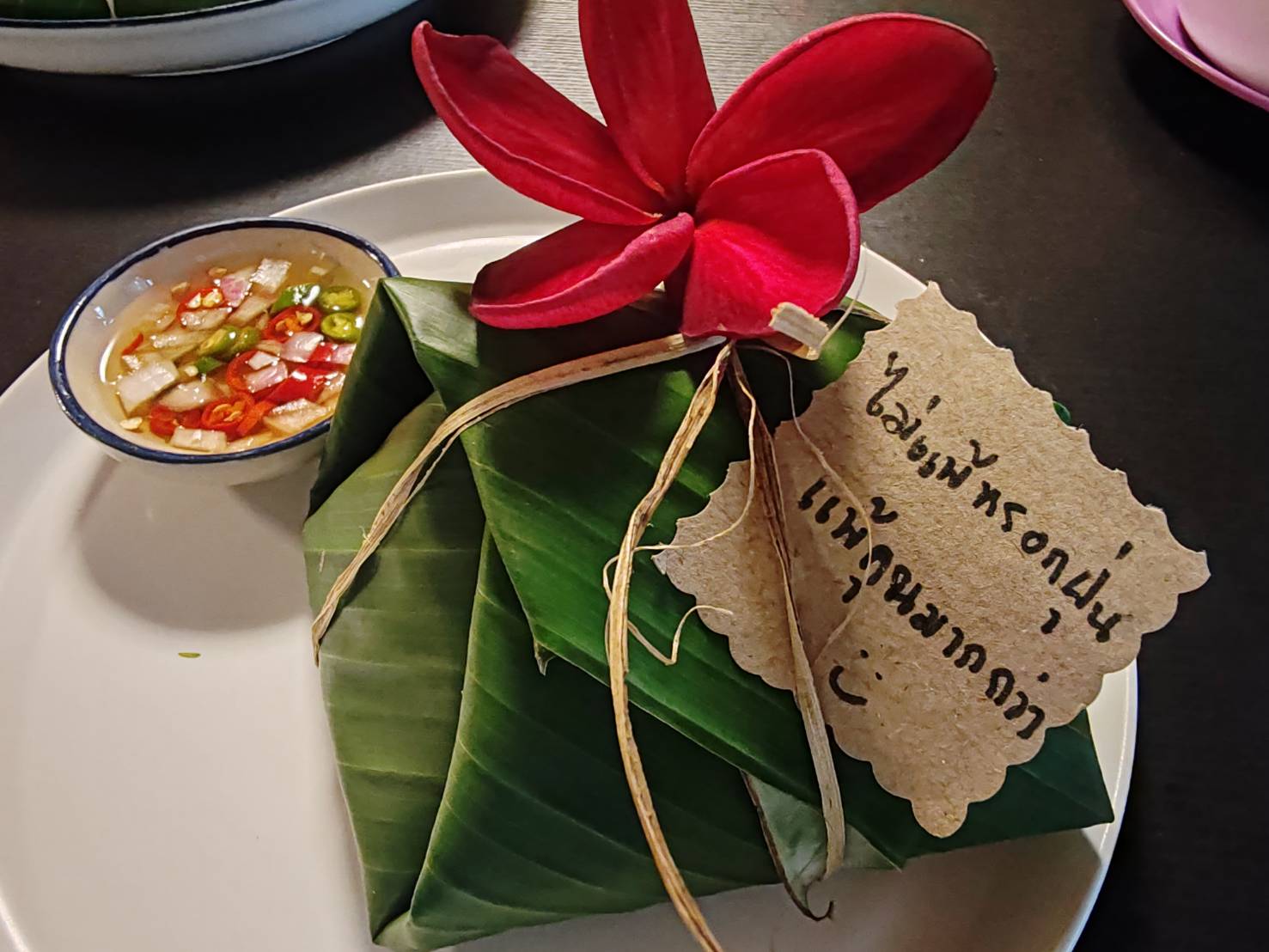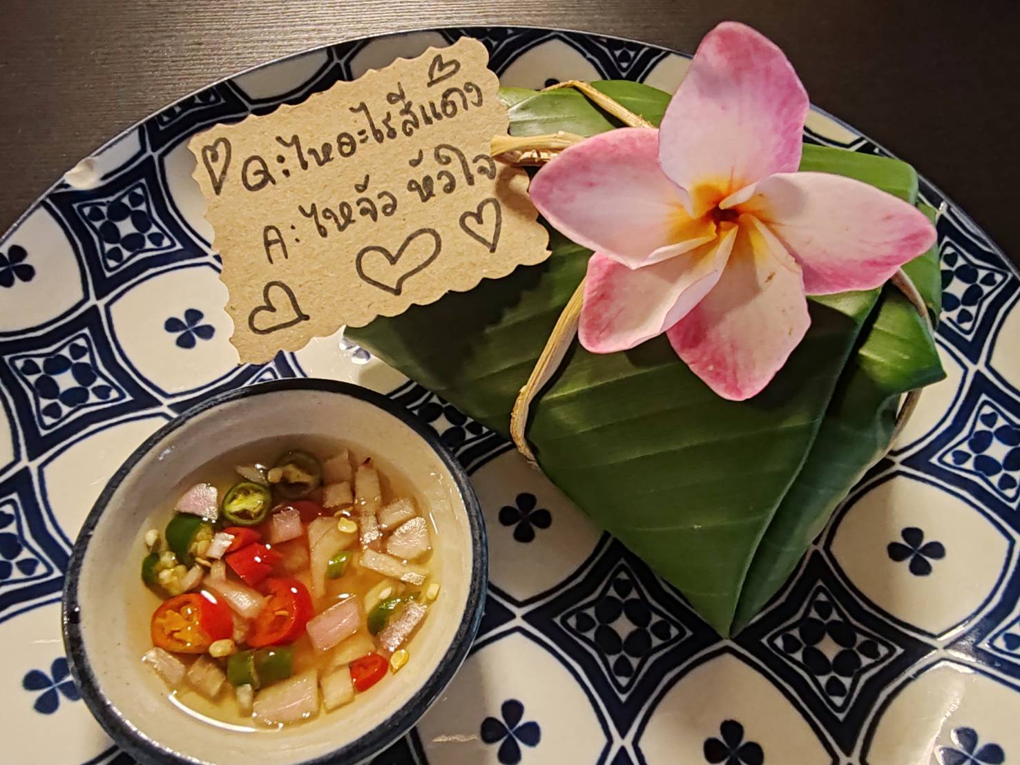 เอว่าแต่ อะไร อยู่ในห่อใบตองกันนะ จานนี้ของคุณผู้หญิงครับ