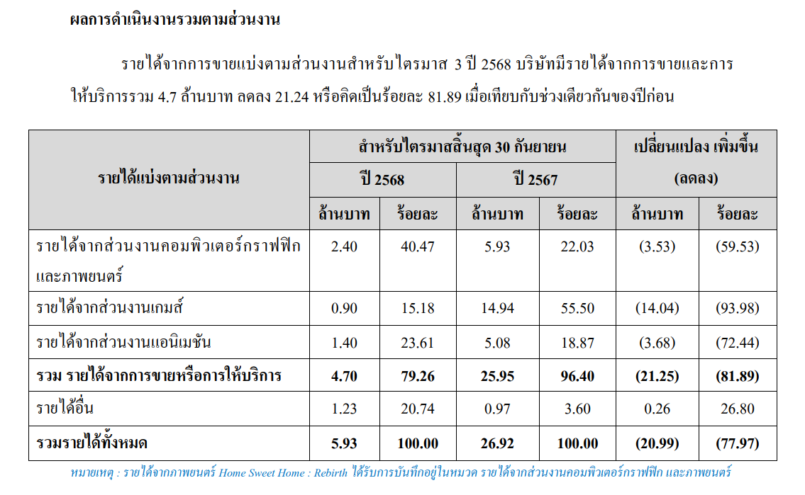 https://weblink.set.or.th/dat/news/202511/1352NWS101120251817481460T.pdf จากสมัยก่อนคนต้องไปรอคิว รายได้หายกำไรหด