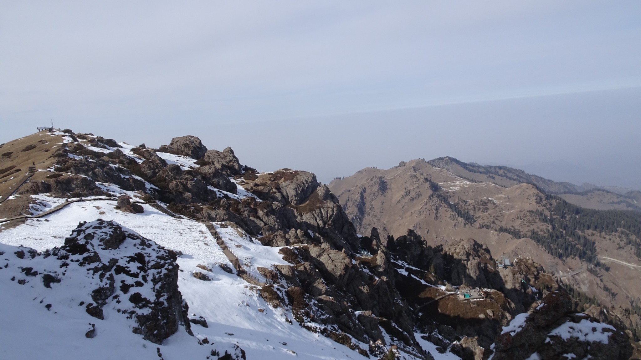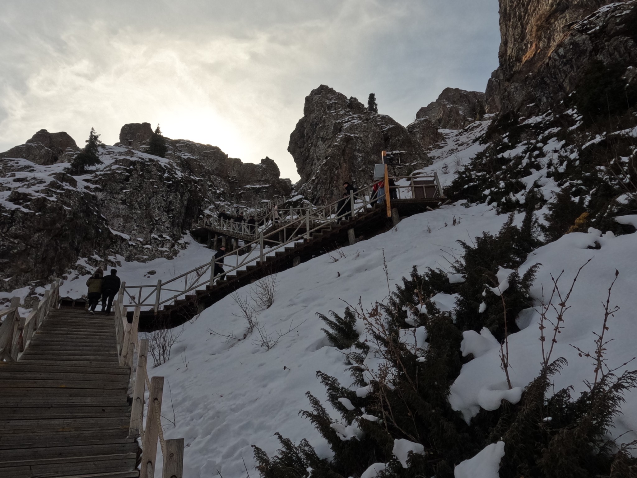 สุดท้ายเราลงจากเทียนซานเลยเวลาที่รถบัสโดยสารกำหนดให้ น้องคนที่เจอบนรถแจ้งเราแล้ว แฮ่ๆ พวกเราไม่ได้ดู......ไม่เป็นไรพวกเราก็ไปถามรถที่มีลักษณะเหมือนรถที่เรามาเมื่อเช้าถามเขา ตกลงคือตามที่บอกรถมี 3 รอบขามา ขากลับเราจะกลับคันไหนก็ได้เพราะเขาจะเช็คชื่อลูกค้าเขาไว้หมดว่ามาหรือยัง นั่นคือเรากลับรถคันสุดท้ายได้ ก็ไปเช็คชื่อกับคนขับพอรถเต็มก็กลับเข้าเมืองเท่านั้นเอง (อันนี้แอบคิดไว้แล้วนะถ้าถึงที่สุดไม่มีรถกลับอาจต้องเหมาแท็กซี่กลับเข้าเมือง) สรุปคือ ดีงามเหนือความคาดหมายสำหรับเทียนซานเทียนสือ ถูกใจมากเดินเตร่ตามใจตัวเองได้แบบสุด มาตกม้าตายก็อีตอนเข้าเมืองเนี่ย คือรถติดโคตร ๆ ลองเดินมาจากสถานีรถบัสอีก หลง คะหลงทาง เกือบแย่