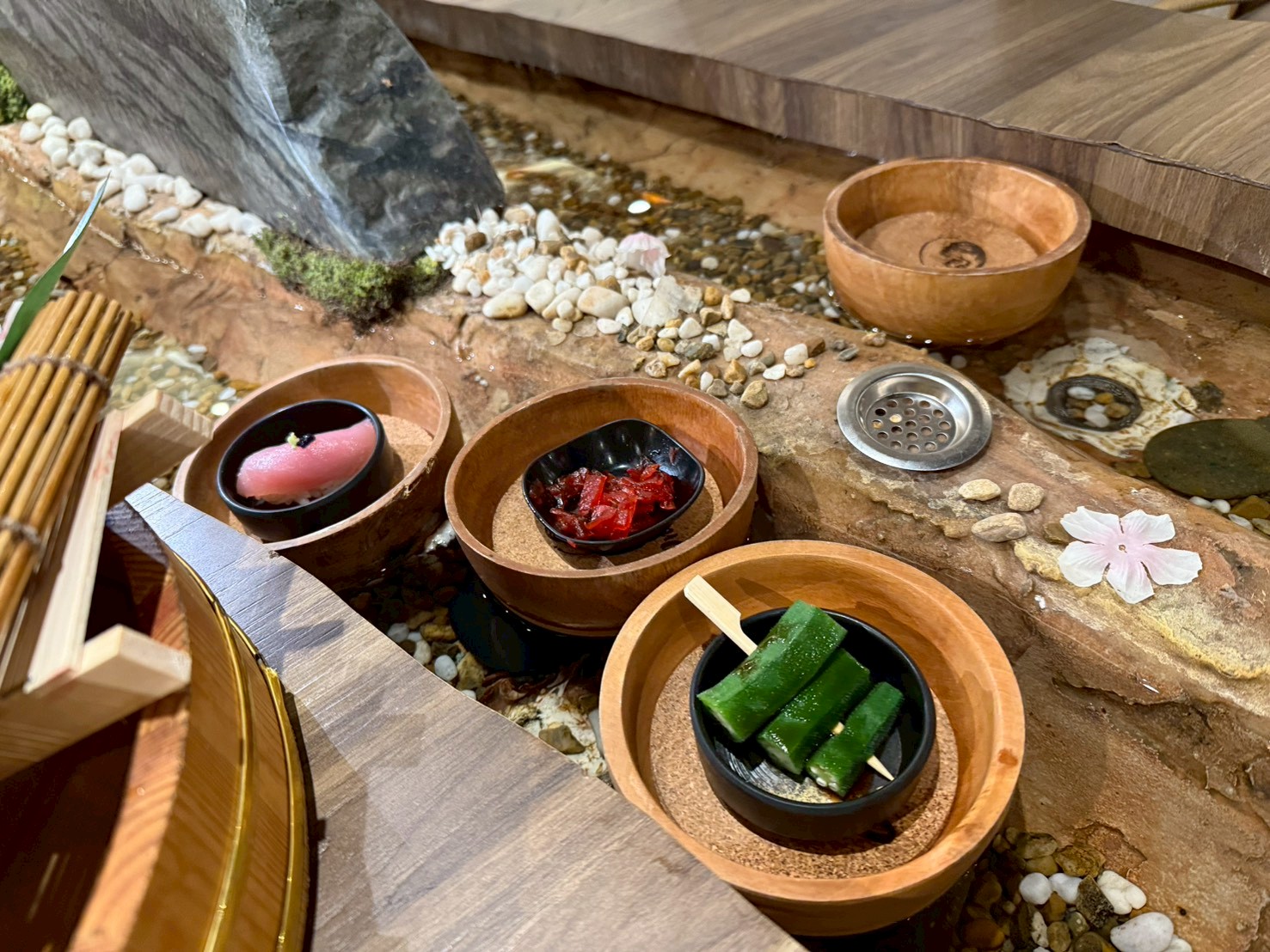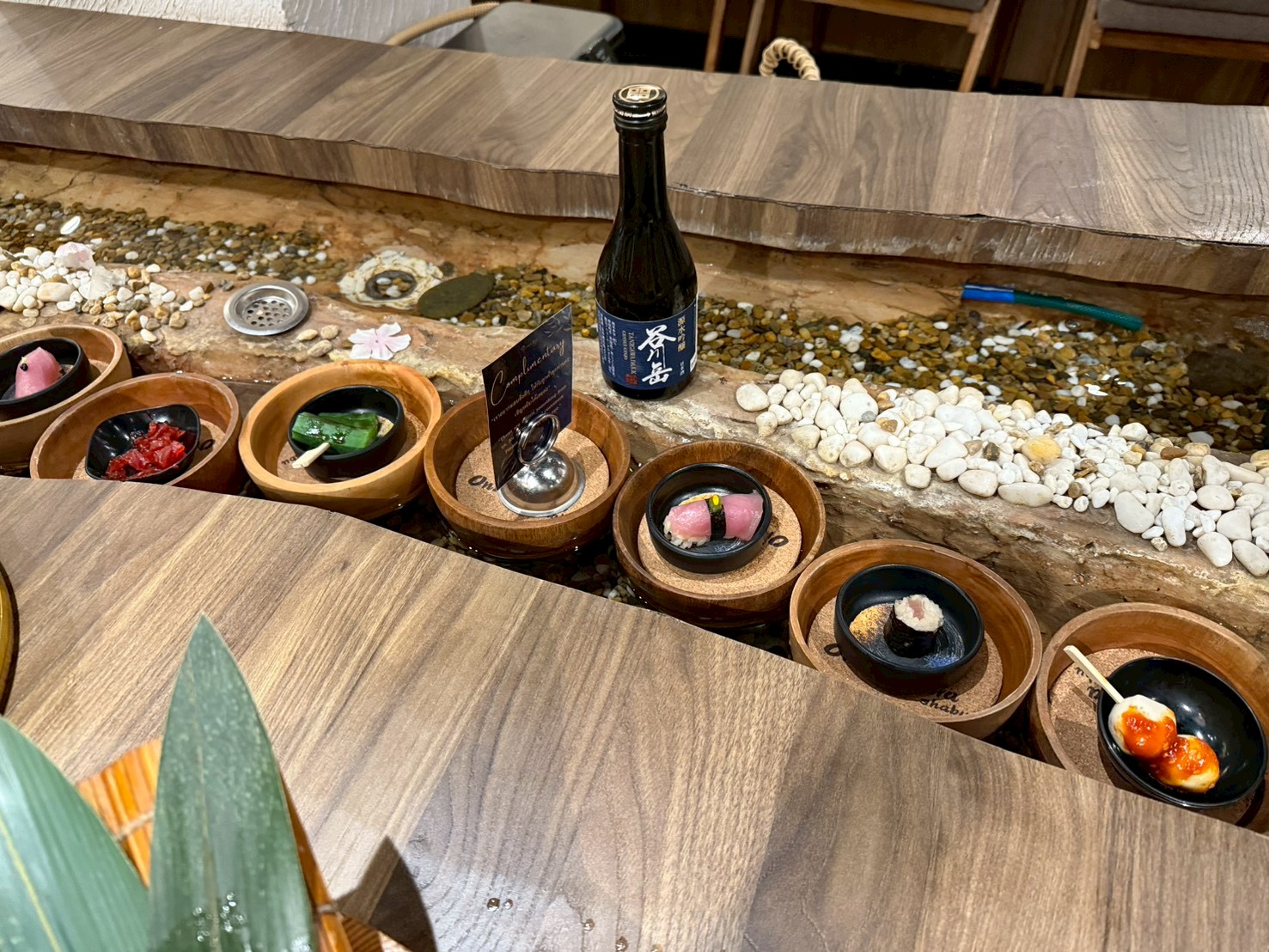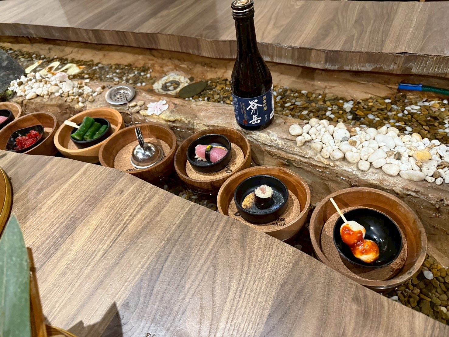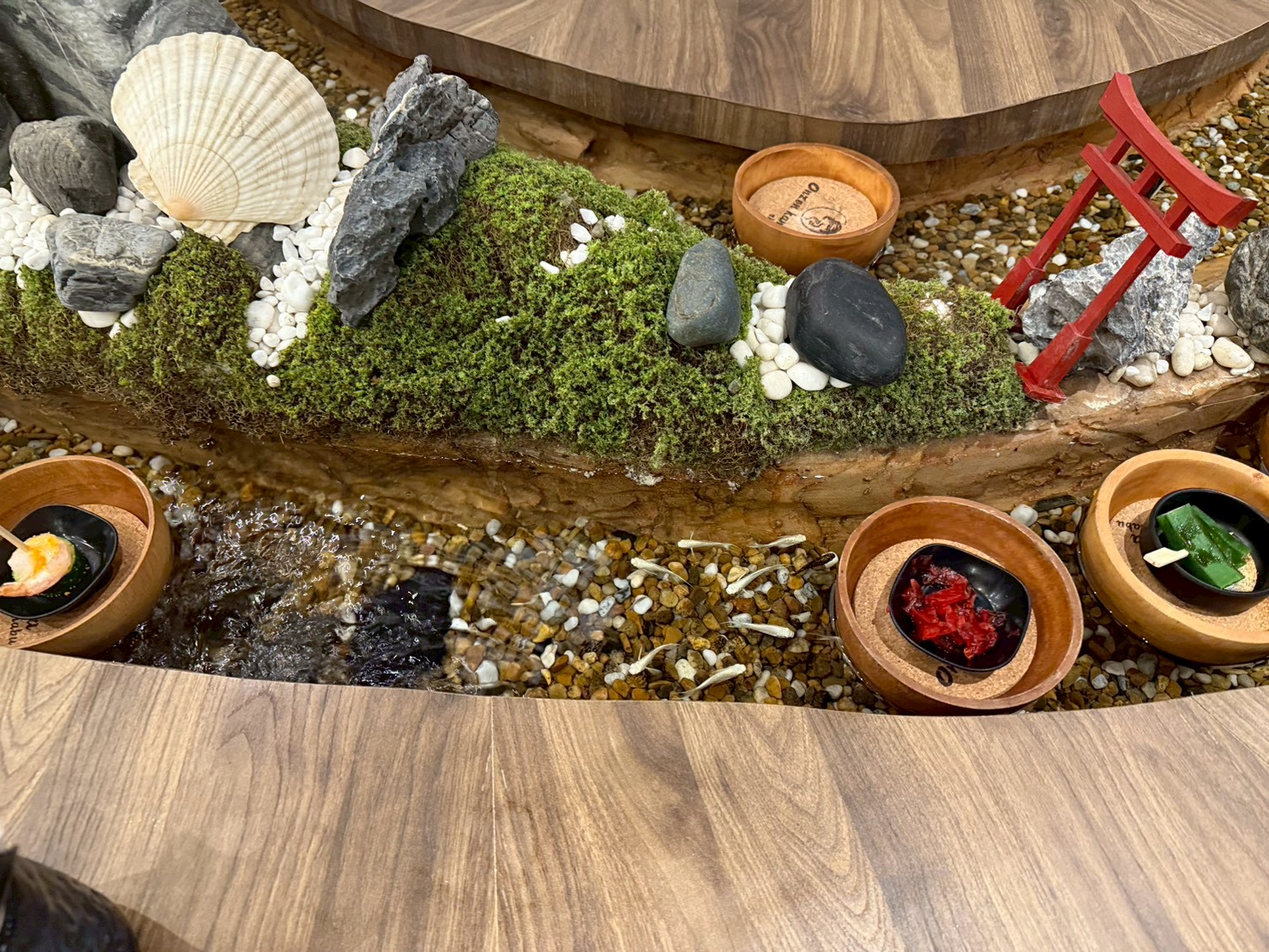 แต่เค้าก็ชดเชย นอกจากความน่ารักของร้านแล้ว ในลำธาร จะถ้วยขนม เครื่อง เคียง ของว่าง และ ซูชิ ลอยมาให้หยิบทานฟรีเป็น Complementary ให้ด้วย