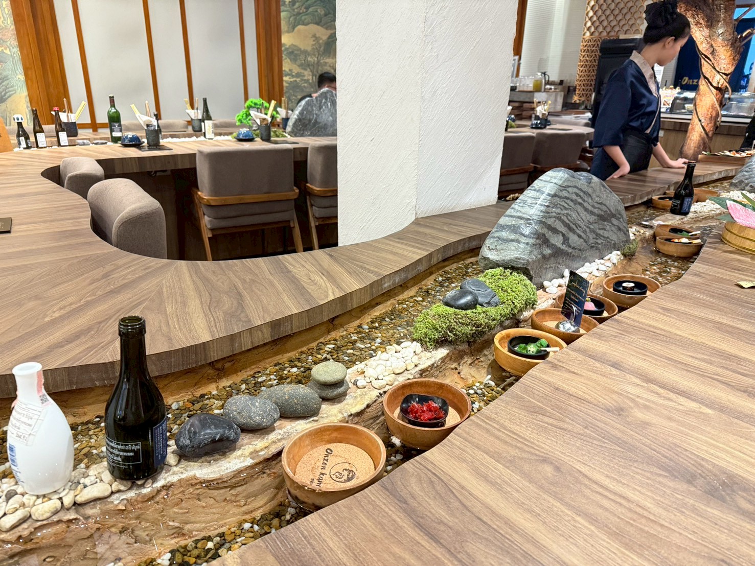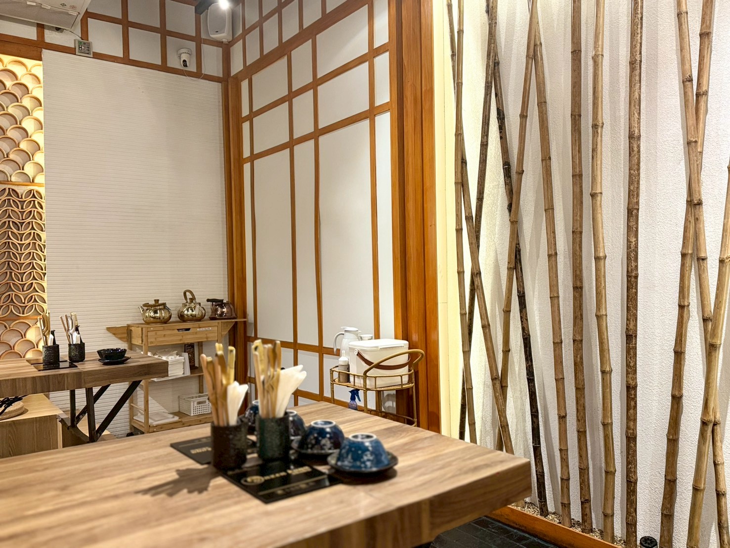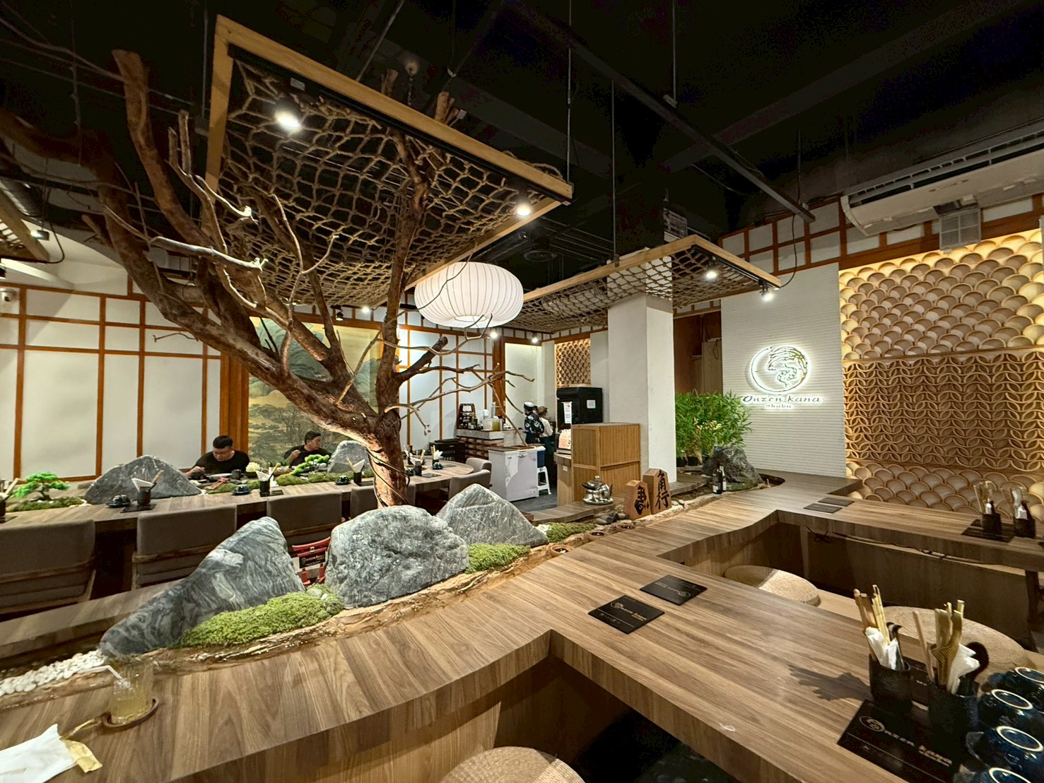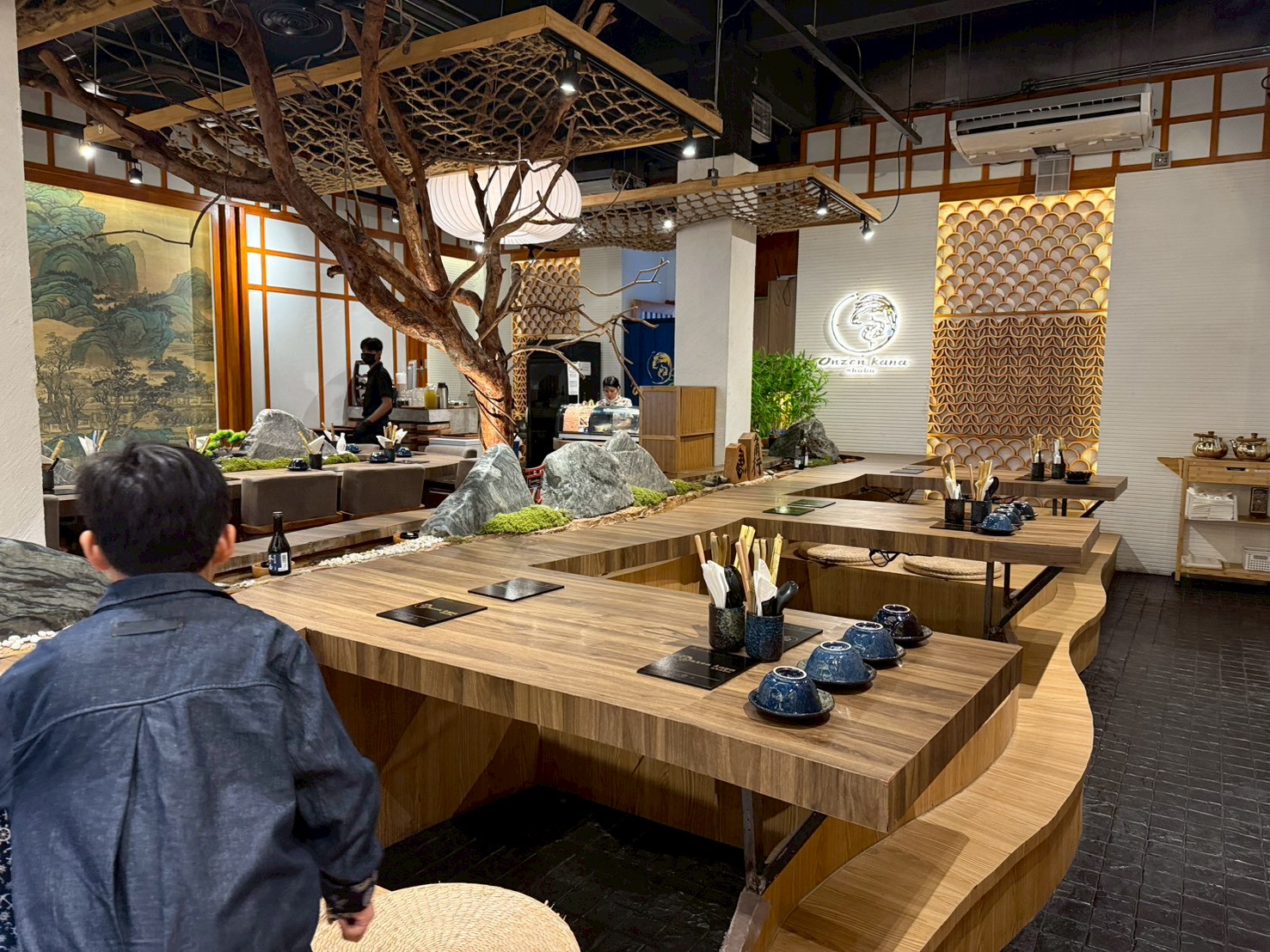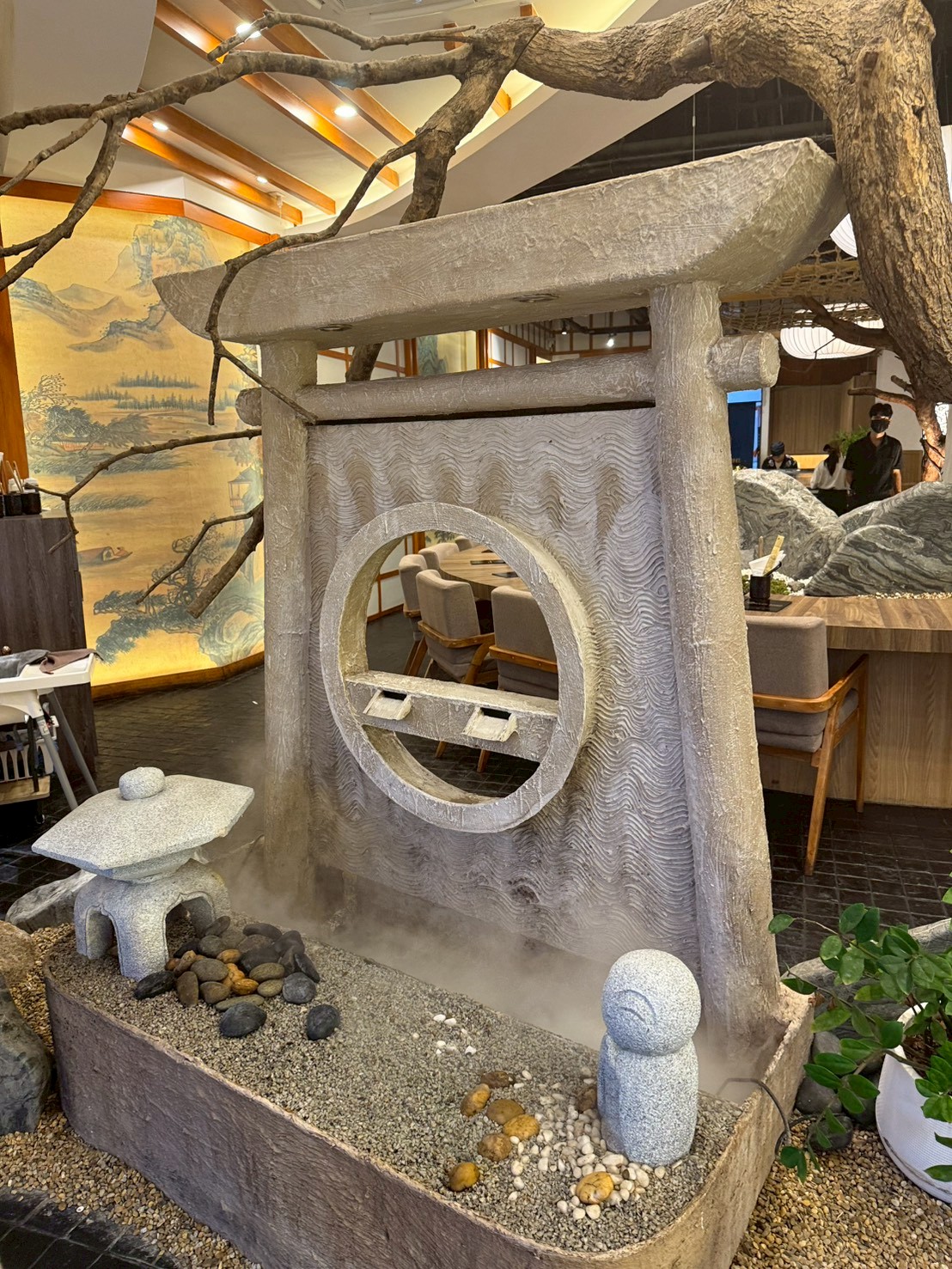 แม้จะเป็นร้าน ใน ห้าง แต่ตกแต่งได้สวยงาม ธีมสวนญี่ปุ่นมีสวนหินลำธาร มีน้ำไหล