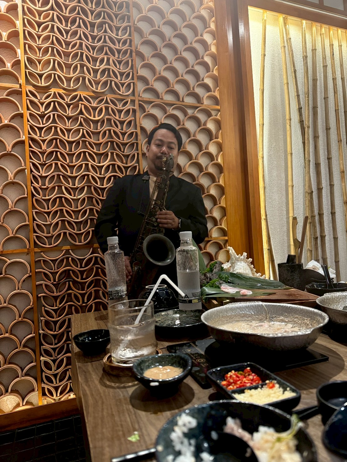 ตอนค่ำๆ มี นักดนตรี เล่น Saxophone เพลงแจ๊ซเบาๆ กล่อม