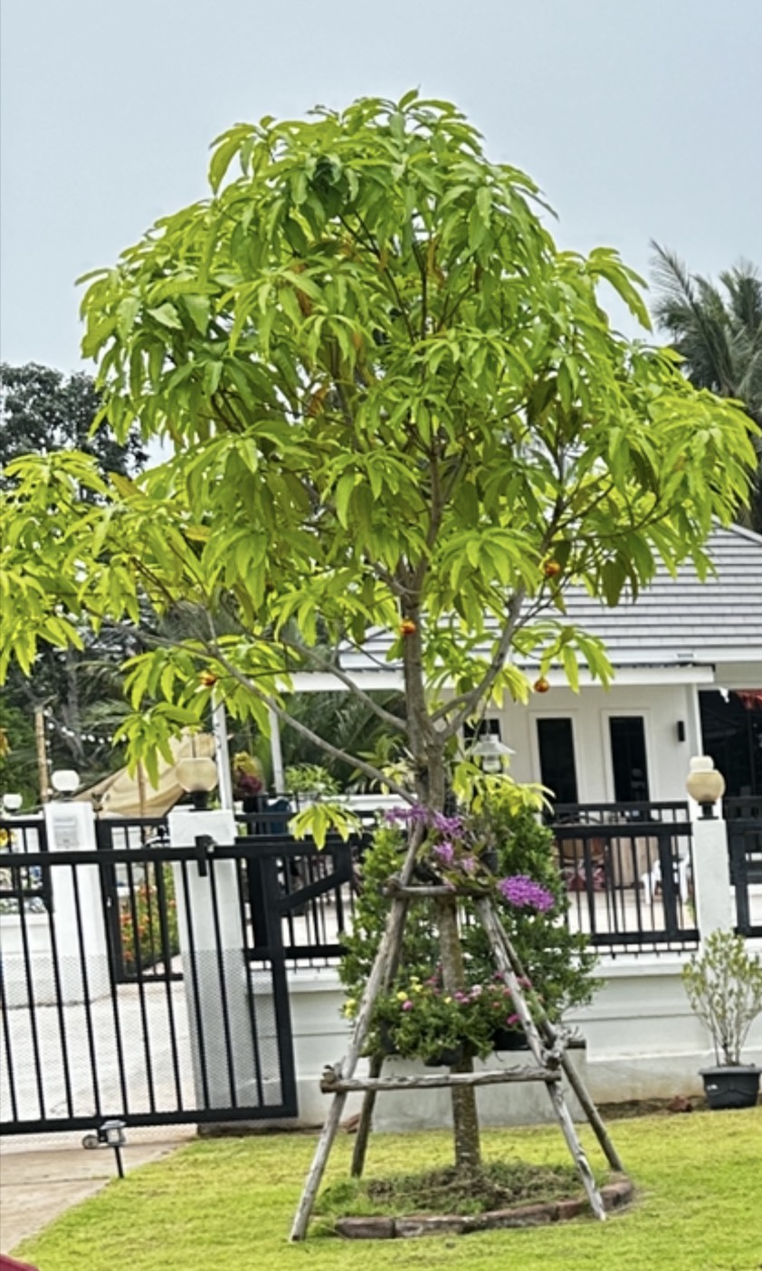 มะม่วงแก้วขมิ้น ปลูกมานานทำไมใบมีสีเขียวอ่อนทั้งต้นคะ