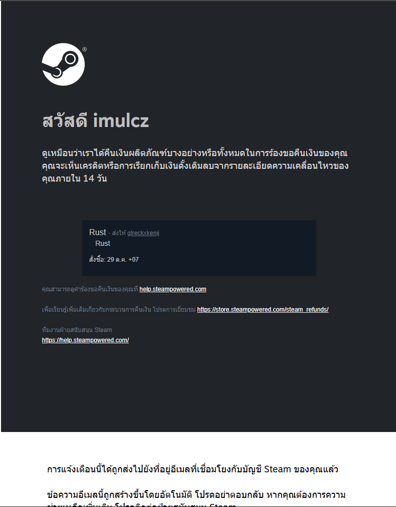 ทำเรื่องขอคืนเงินจาก steam ไป 2 รายการ แต่ได้เงินคืนมาแค่ 1 รายการ ทำไงครับ