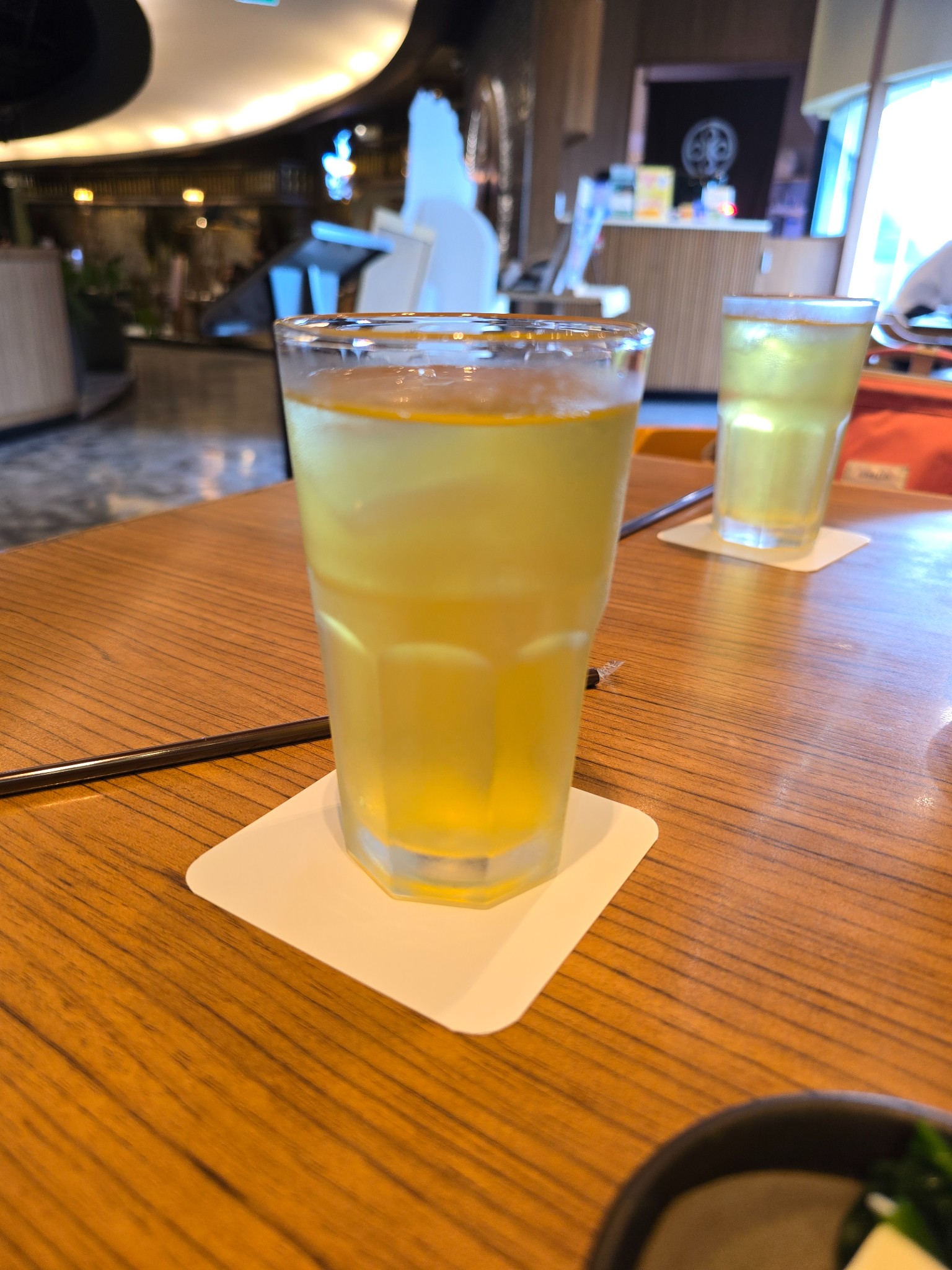 🍵 ชาเขียว (เย็น): ดื่มสดชื่นดีครับ ไม่ใช่มัทฉะ แต่ก็ช่วยตัดความมันได้ดี เติมไป 6 แก้ว ครับ