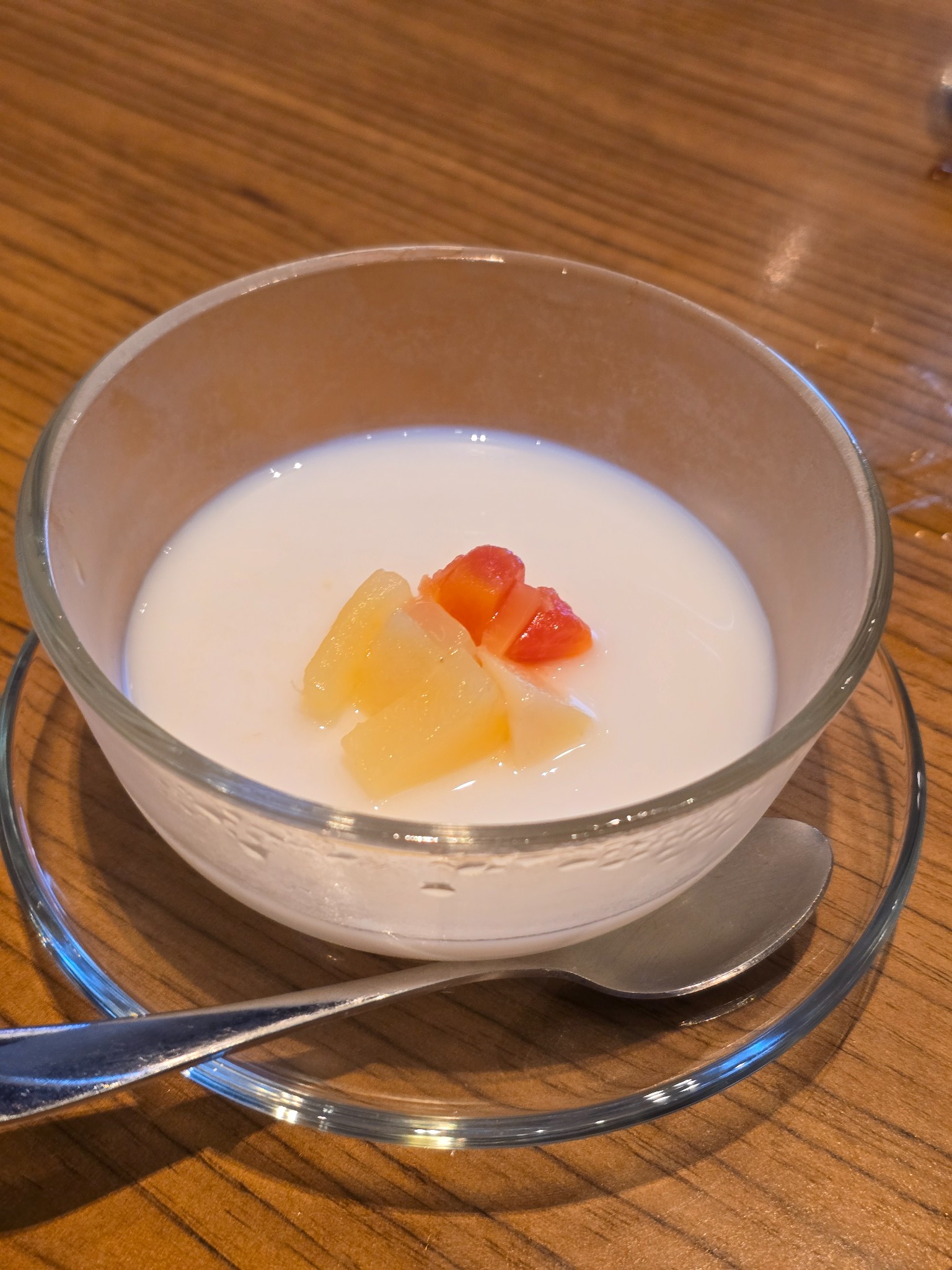 ผมเลือกเป็น เต้าฮวยฟรุ๊ตสลัด ครับ ที่นี่เสิร์ฟแปลกหน่อย คือเต้าฮวยเป็นแบบ "วุ้นกรอบ" ไม่ใช่นุ่มเด้งอย่างที่คุ้นเคย