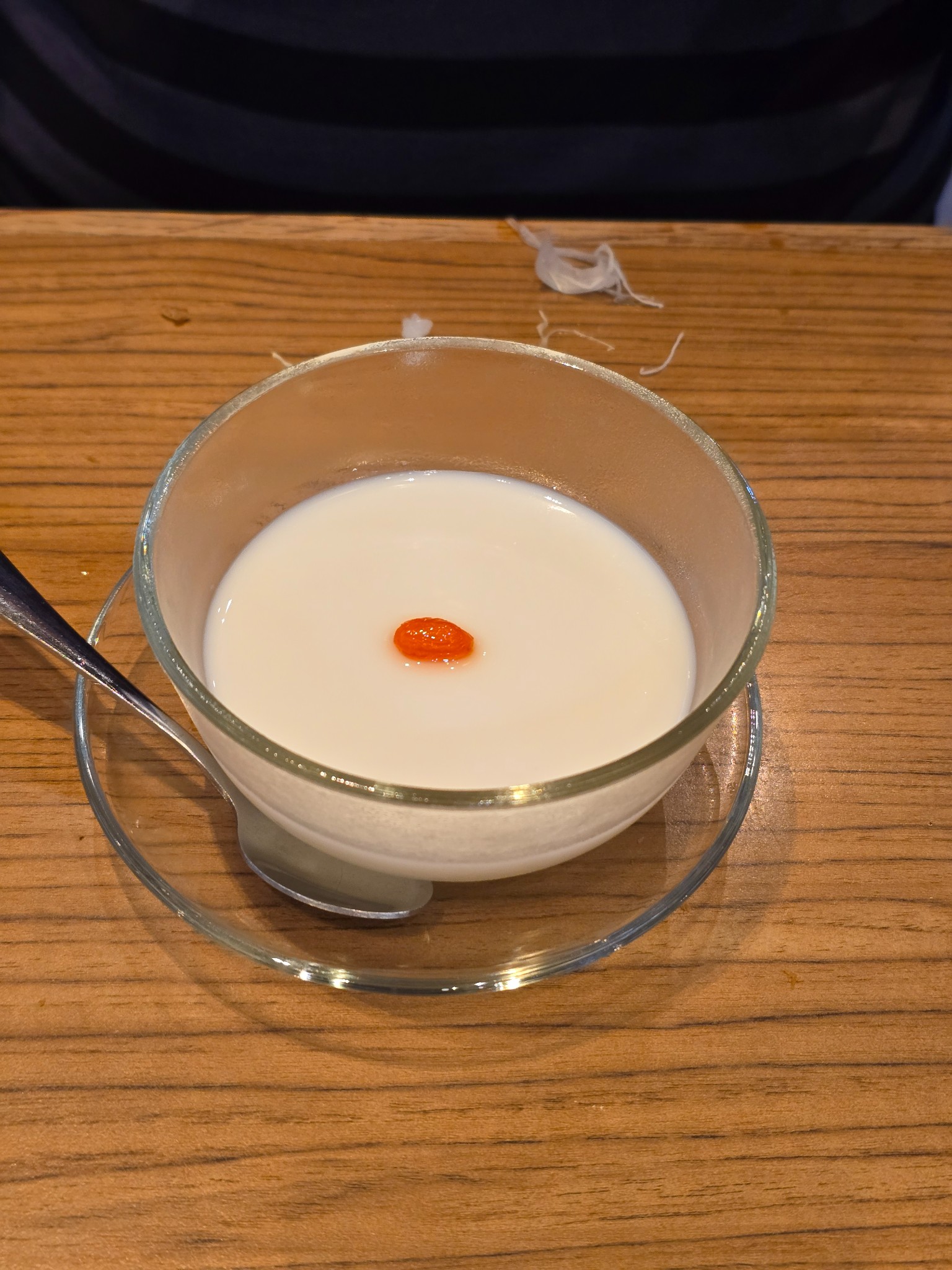 ส่วนแฟนเลือก อัลมอนด์คัสตาร์ด คัสตาร์ดก็เป็นวุ้นกรอบเหมือนกัน แต่มีกลิ่นนมอัลมอนด์ที่ชัดเจนมาก ส่วนตัวผมชอบเมนูนี้มากกว่าครับ