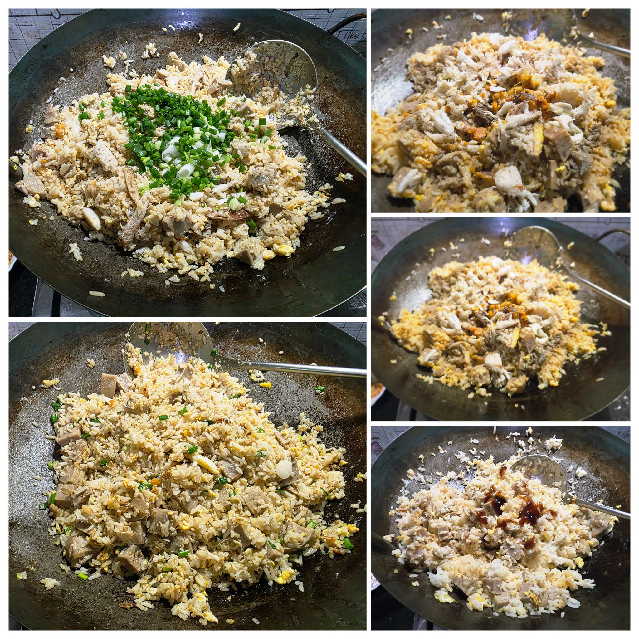 ต้องขออภัย แต่ละครั้งผมก็ทำไม่ซ้ำเดิมเลย ไร้สูตรตายตัว บางทีก็ใส่หอมหัวใหญ่หันเต๋าลงไปผัดด้วย แต่มื้อนี้ ผมใช้แต่ต้นหอม ซอนสั้นๆไว้ผัดลงไป กับข้าวผัด