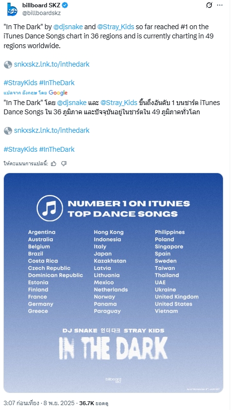 🔥 Stray Kids "IN THE DARK"เพลงใหม่สุดสวยกับซาวด์อิเล็กทรอนิกส์ของ DJ Snake เปิดตัวที่อันดับ 4 บนชาร์ตเพลง iTunesทั่วโลก