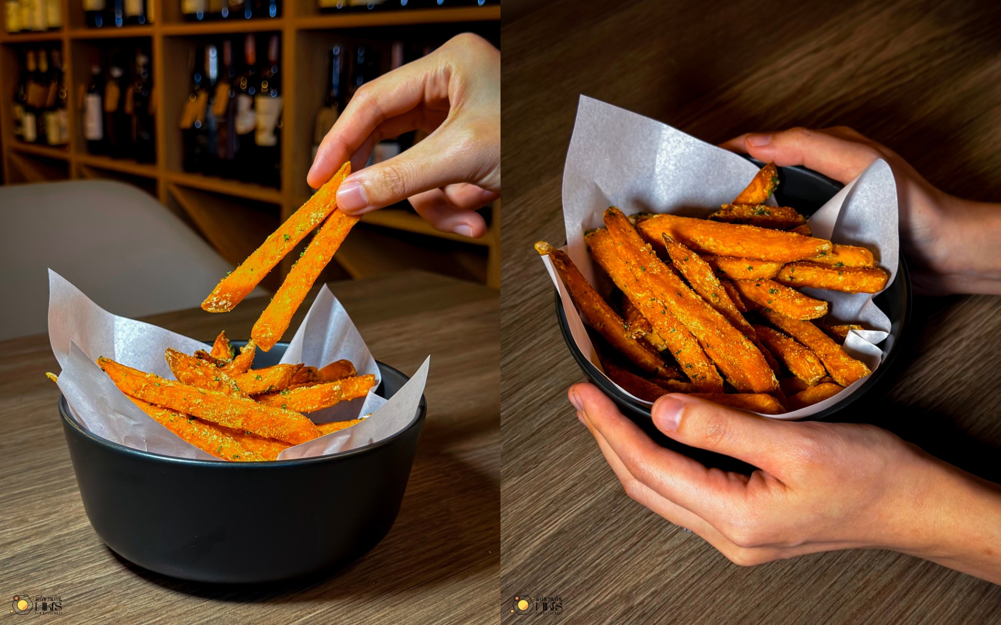 Sweet Potato Fries (190) มันหวานทอด กรอบนอกนุ่มใน ใช้มันหวานส้มรสละมุน โรยเกลือทะเลเบาๆ เป็นเมนูทานเล่น ที่เพลินมาก