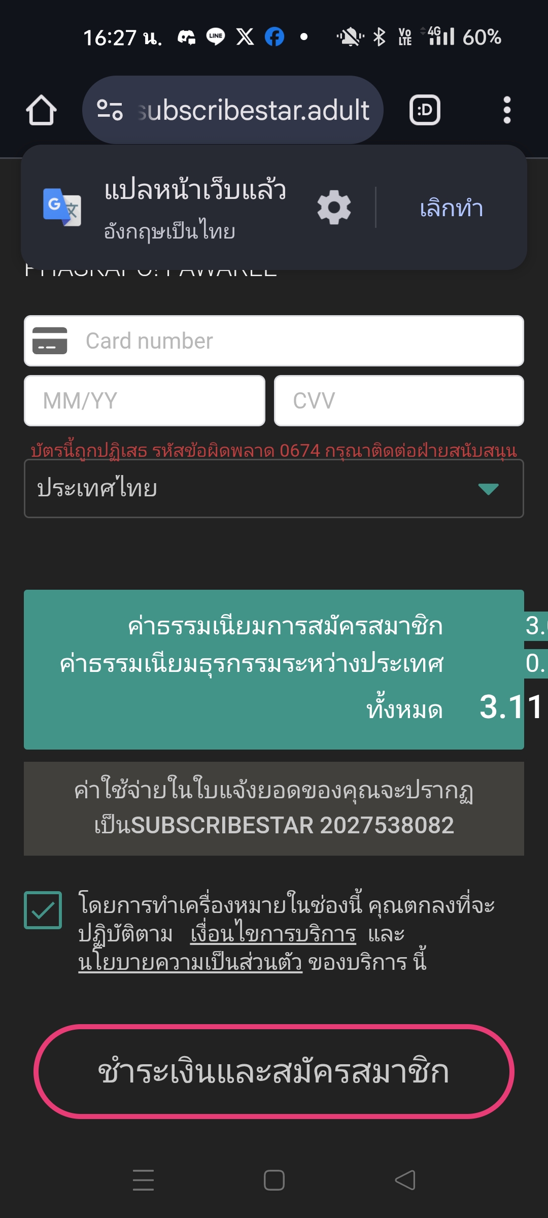 บัตรใบนี้ถูกปฏิเสธ รหัสข้อผิดพลาด 0674