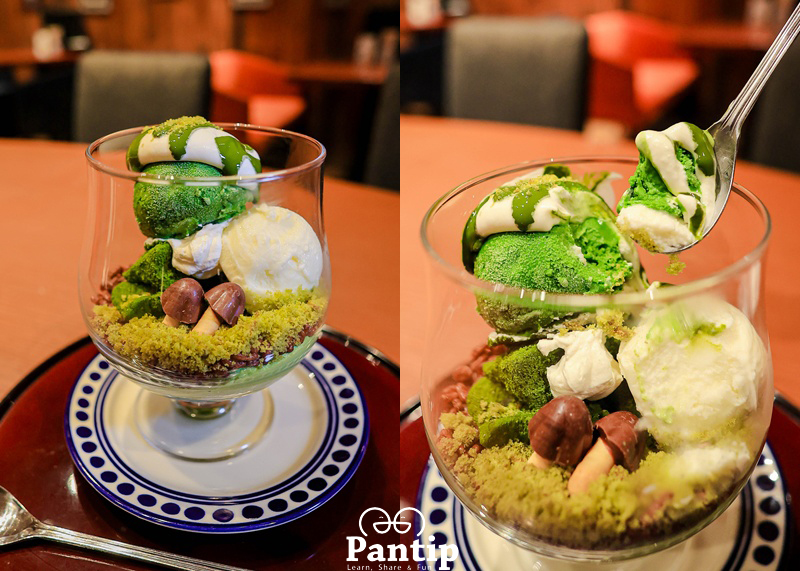 อีกเมนูที่สายมัทฉะห้ามพลาดเลยก็คือ Chaso Moritaen matcha moss parfait ภายในแก้วจะมีการตกแต่งมาอย่างสวยงาม ให้อารมณ์พวกมอสเฟิร์นในป่า ไอศกรีมชาเขียวรสเข้มข้นกับไอศกรีมรสนมหวานมัน กินพร้อมกับครัมเบิ้ลกรุบกรอบ ฟินนาเล่ อร๊าาาาา