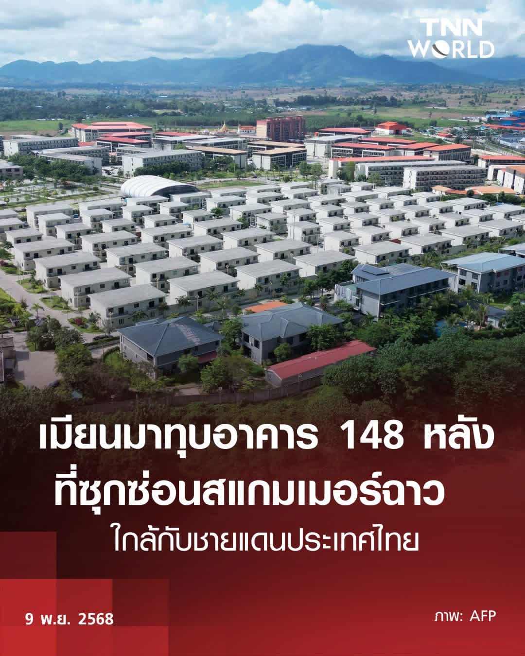 รัฐบาลทหารเมียนมาเปิดเผยในวันนี้ (9 พ.ย.) ว่า ได้เริ่มทุบทำลายอาคาร 148 หลัง ภายในพื้นที่ศูนย์กลางของเครือข่ายอาชญากรรมทางออนไลน์ ซึ่งตั้งอยู่ติดกับชายแดนประเทศไทย โดยอาคารเหล่านี้รวมถึงโรงพยาบาลสูง 4 ชั้น โรงแรม หอพัก สถานที่ออกกำลังกาย สปา และคาราโอเกะขนาดใหญ่ 2 ชั้น