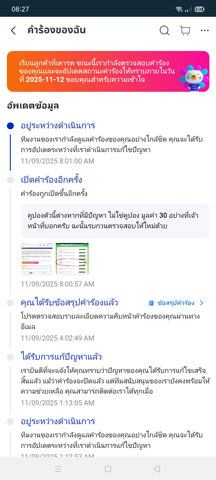 ความไม่สนใจลูกค้าของ CP และ 7 กรณีใช้แต้มแลกของผ่านแอพแต่ไม่ได้ของ แต้มถูกหัก ผ่านมาอาทิตย์กว่าแล้วเรื่องเงียบสนิท