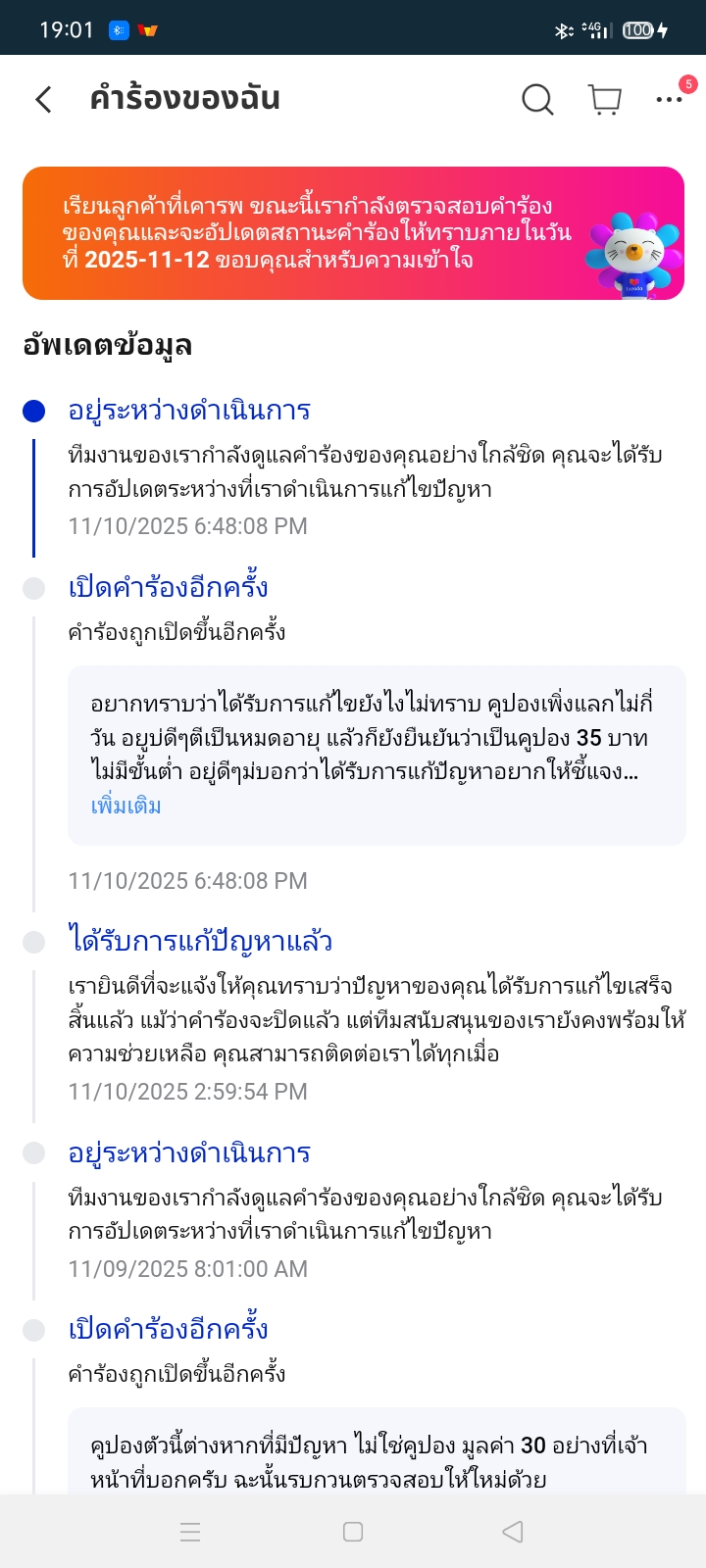 เรื่องของเรื่องคือ จขกท ได้เล่น lazland ปลูกต้นไม้รดน้ำเล่นมินิเกมส์จนต้นไม้โตจนได้ชิ้นส่วนพัซเซิลครบ แต่ไม่สามารถแลกเป็นข้าวได้เนื่องจากอยู่นอกพื้นที่ เลยแลกเป็นคูปอง 35 บาท แลกได้ยังไม่ถึงสองอาทิตย์คูปองหมดอายุ อดใช้ ส่งคำร้องไปหลายครั้งมากก็บอกว่าได้รับการแก้ไขแล้ว ไม่มีคำชี้แจง แถมรู้สึกเหมือนปิดคำร้องไปเฉย ๆ