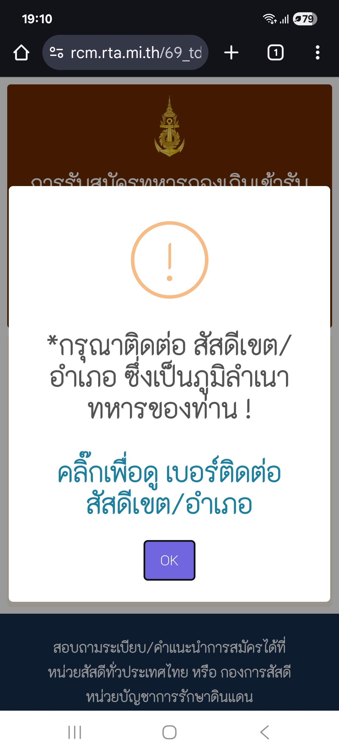ทำไมสมัครทหารเกณฑ์ออนไลน์ของปี69ไม่ได้ครับ ทั้งๆที่กรอกข้อมูลวันเดือนปี เลขบัตรประชาชนถูก