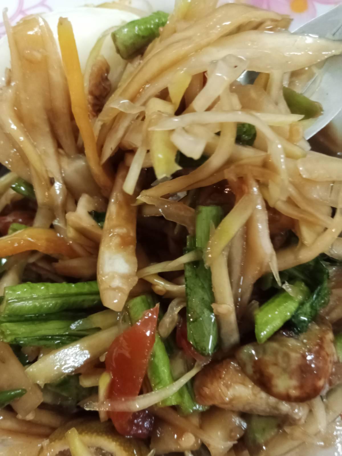 ลุงเล่า Ep. 307: อาหารไทยจับคู่ แกงจืดเต้าหู้ไข่ & ผัดขิงไก่เครื่องในไก่ ผัดขิงไก่เครื่องในไก่ ปรุงรสด้วยเต้าเจี๊ยว และใส่ขิงซอยเยอะ ใส่หอมหัวใหญ่ ใส่เห็ดหูหนูดำ ใส่พริกขี้ฟ้าแ