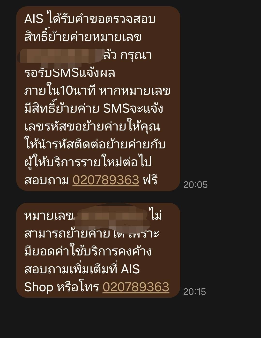 สอบถามเรื่องการย้ายค่ายไป AIS ครับ