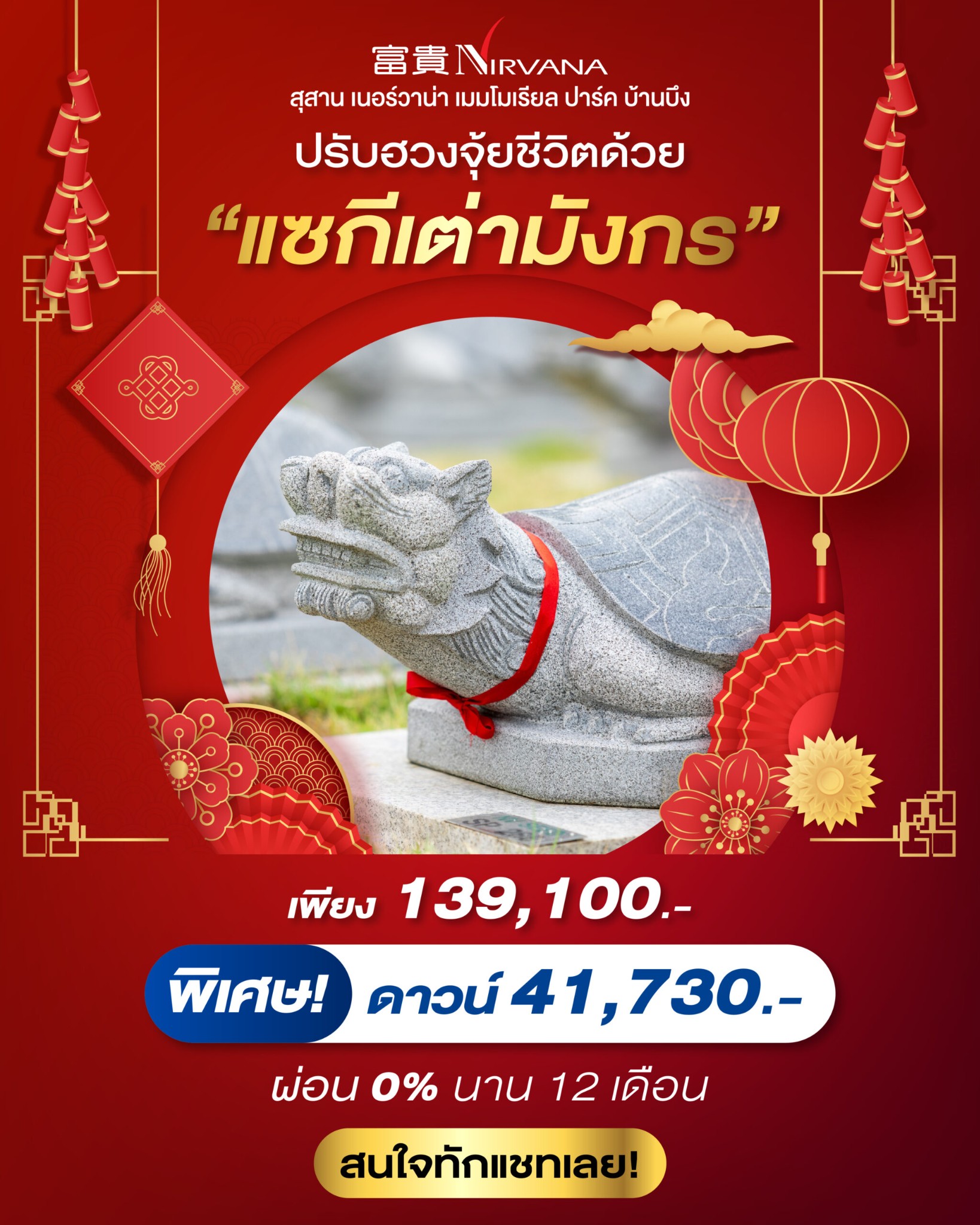 แซกีเต่ามังกร: พิธีมงคลที่เน้นพลังอำนาจและความมั่นคงในชีวิต (ราคาเริ่มต้น 139,100 บาท) และ แซกีสุสาน (ราคาขึ้นอยู่กับแปลงที่เลือก)