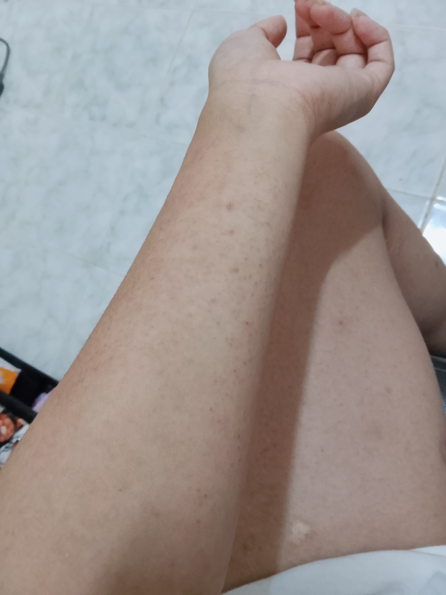 เป็นผื่นมาหลายวันแล้วค่ะ เกือบเดือนนึงแล้วไม่หายสักที กินยา ทายา ฉีดยา ไม่หายเลย ขึ้นตามแขน ขา คอ เรียกได้ว่าเต็มตัวเลยค่ะ จะมีคันบ้างนิดหน่อย เป็นรอยแดงๆ บางที่ก็สีเข้ม บางที่ก็สีอ่อน ตอนนี้กังวลมากค