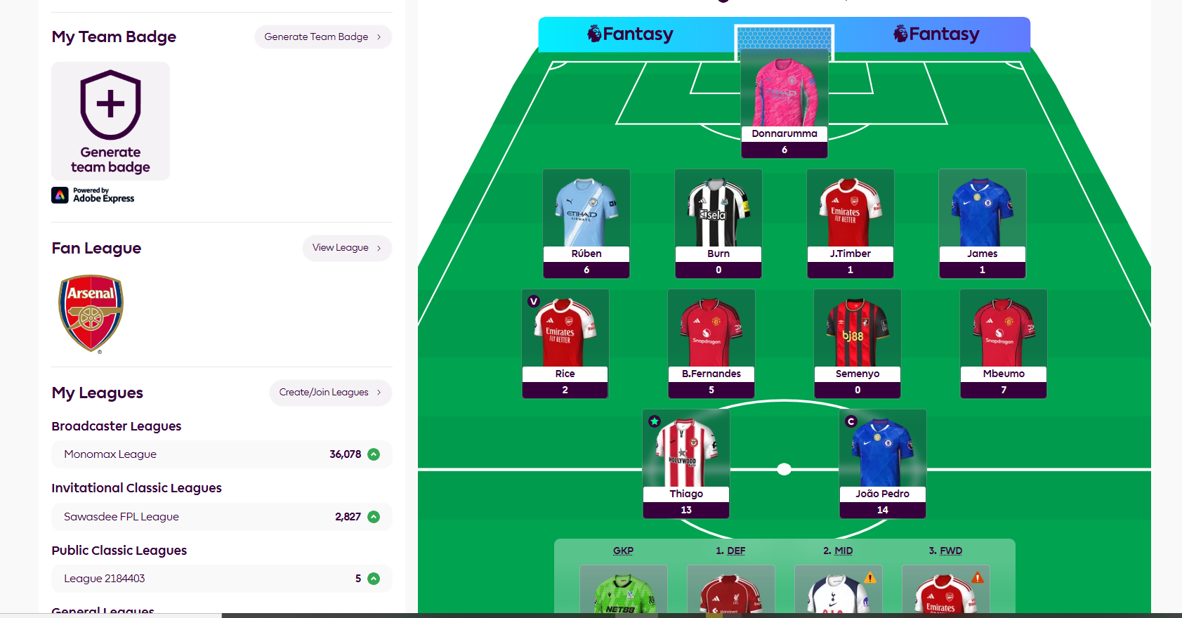 Fantasy Premier League (FPL) (เกม) วีคนี้ผมได้กี่คะแนนครับ