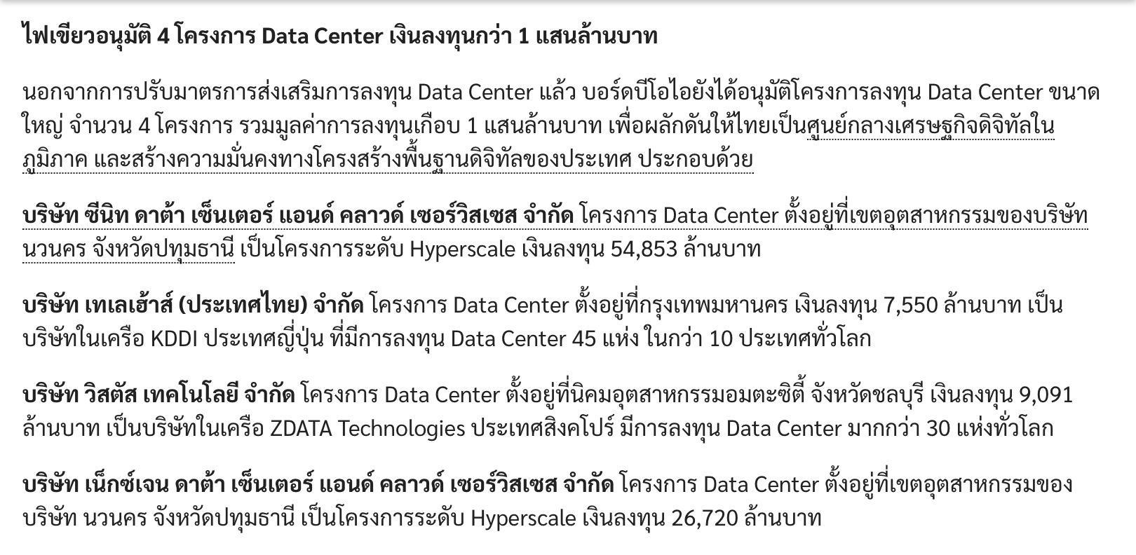 BOI หักสภาพัด TDRI อนุมัติ ส่งเสริมการลงทุน Data Center อีก เกือบแสนล้านบาท