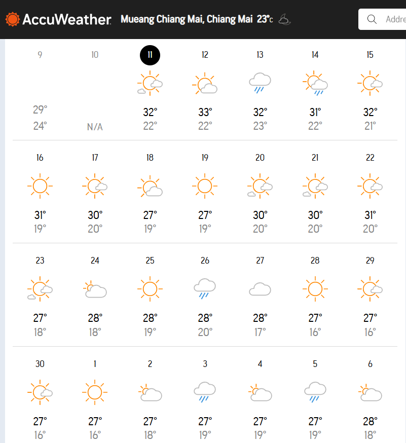 ภาพที่ 5 แสดงแบบจำลองสภาพอากาศของ AccuWeather ณ เชียงใหม่