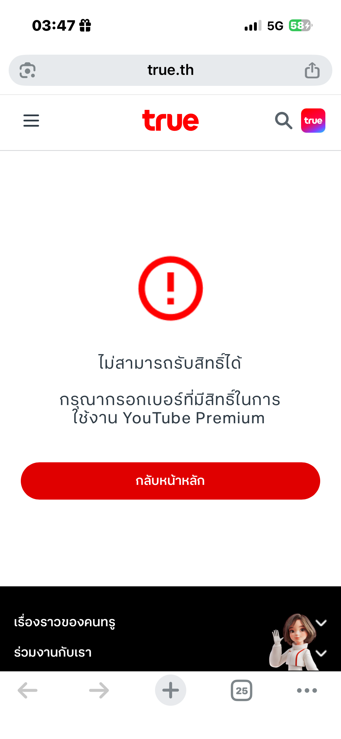 ได้รับบริการไม่ครบตามแพ็กเกจ True