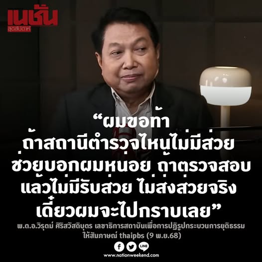 มีใครจะร่วมท้าเรื่อง "สถานีตำรวจไม่มีส่วย" ร่วมกับ พ.ต.อ.วิรุตม์ ไหม?