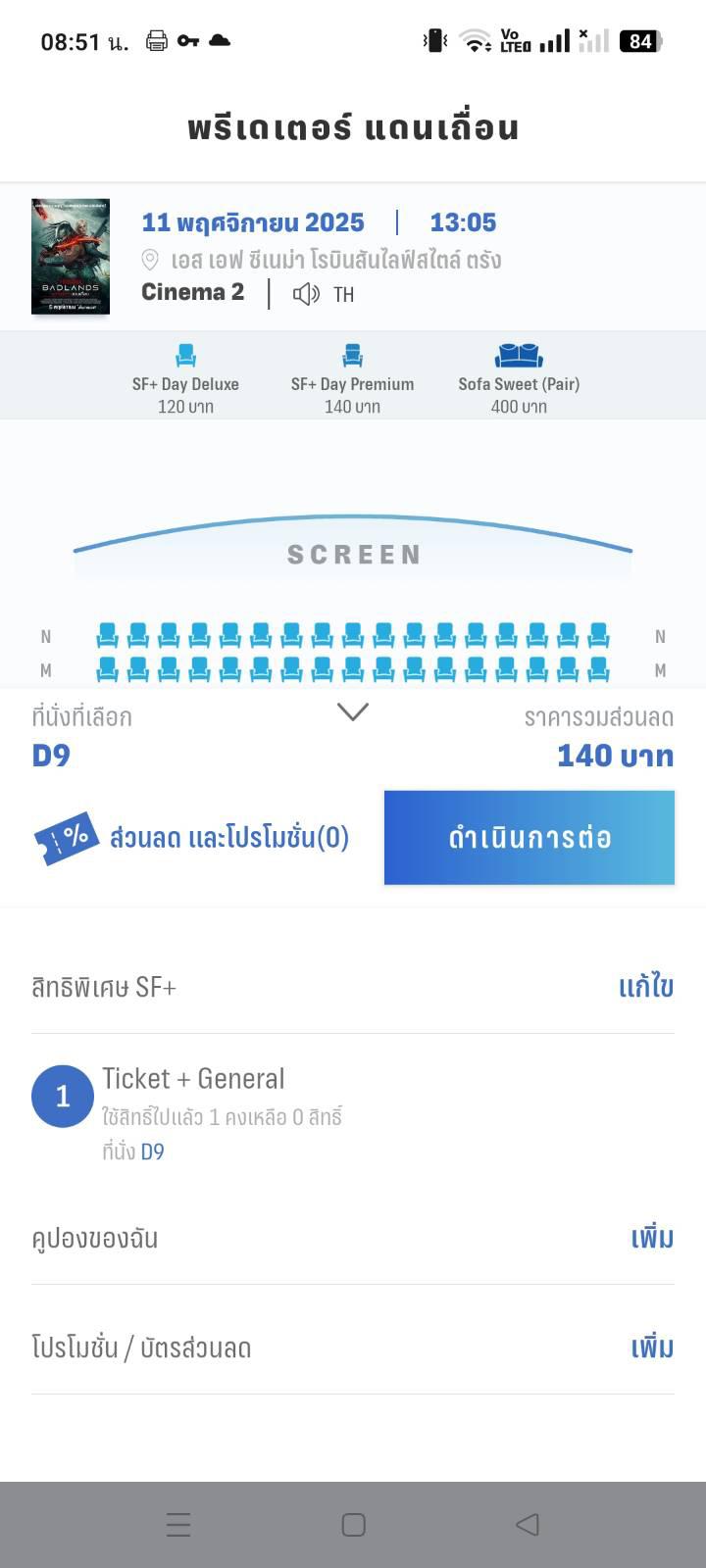 ปัญหาต่อมา คือกดส่วนลดไม่ได้ พอดีว่าเมื่อวานเรากำลังจะจองตั๋วหนังสำหรับวันพุธแต่กดส่วนลดแล้วไม่ขึ้น(วันอื่นก็ลองแล้ว)